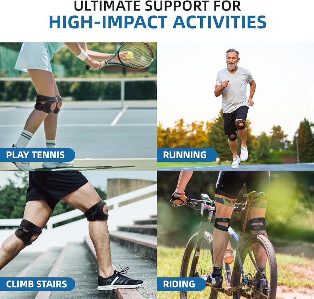 • خفيف الوزن ومنخفض المظهر: 76 جم فقط (2.68 أونصة)، غلاف الركبة أكثر مرونة من دعامة الركبة العادية الضخمة؛ يمنع التصميم المفتوح من الخلف من التكتل أو الضغط خلف الركبة ويسمح بمزيد من حرية الحركة؛ يوفر الراحة عند الارتداء لفترات طويلة؛ مثالية للتمارين اليومية مثل الجري والمشي والصعود والنزول وكرة البيسبول وكرة القدم والتنس ورفع الأثقال والتمرين والوقوف لفترة طويلة.
