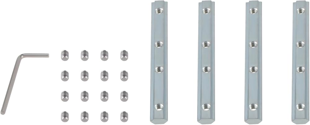 العبوة: 4 قطع موصل خط مستقيم (الطول 180 مم) + 16 قطعة براغي + 1 قطعة مفتاح ربط 5 مم، مناسب لبثق الألومنيوم من سلسلة 3030 بفتحة 6 مم