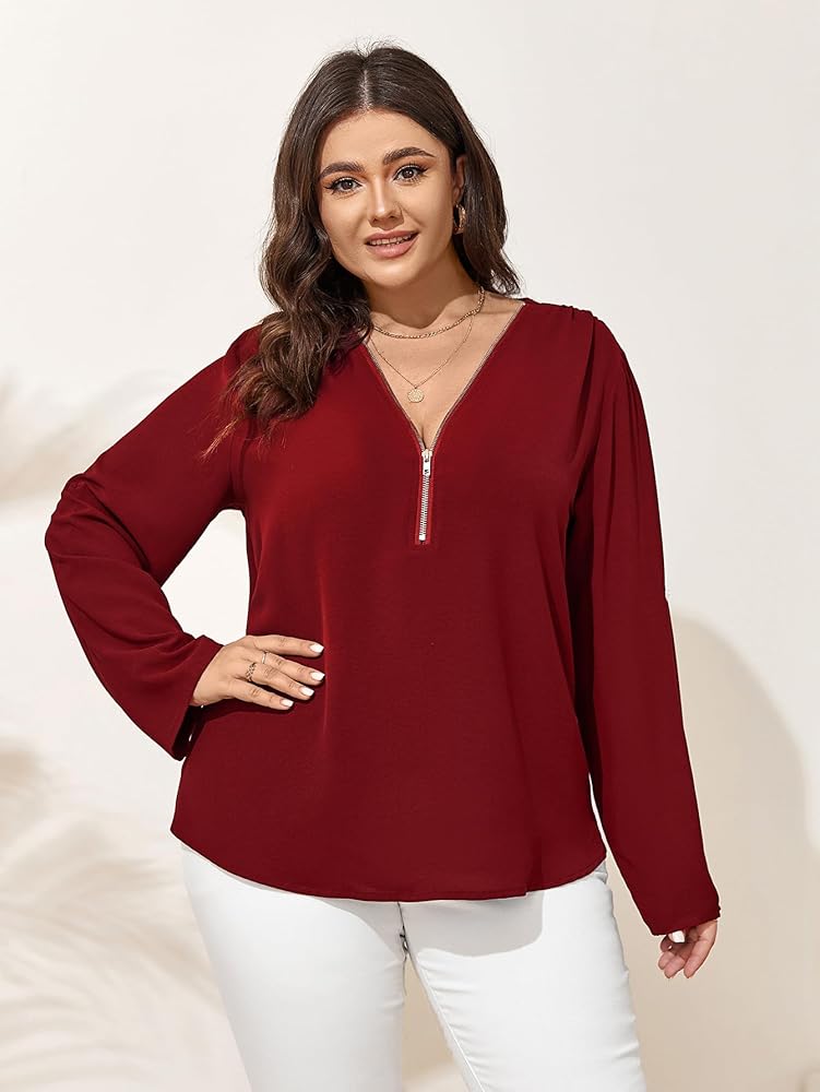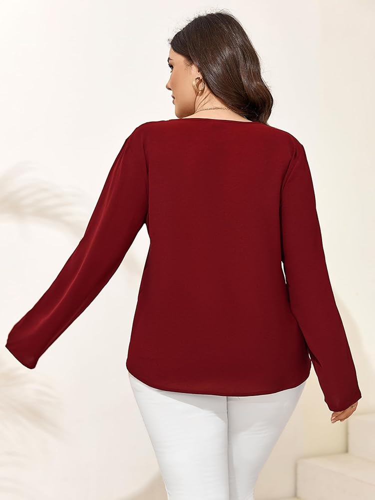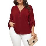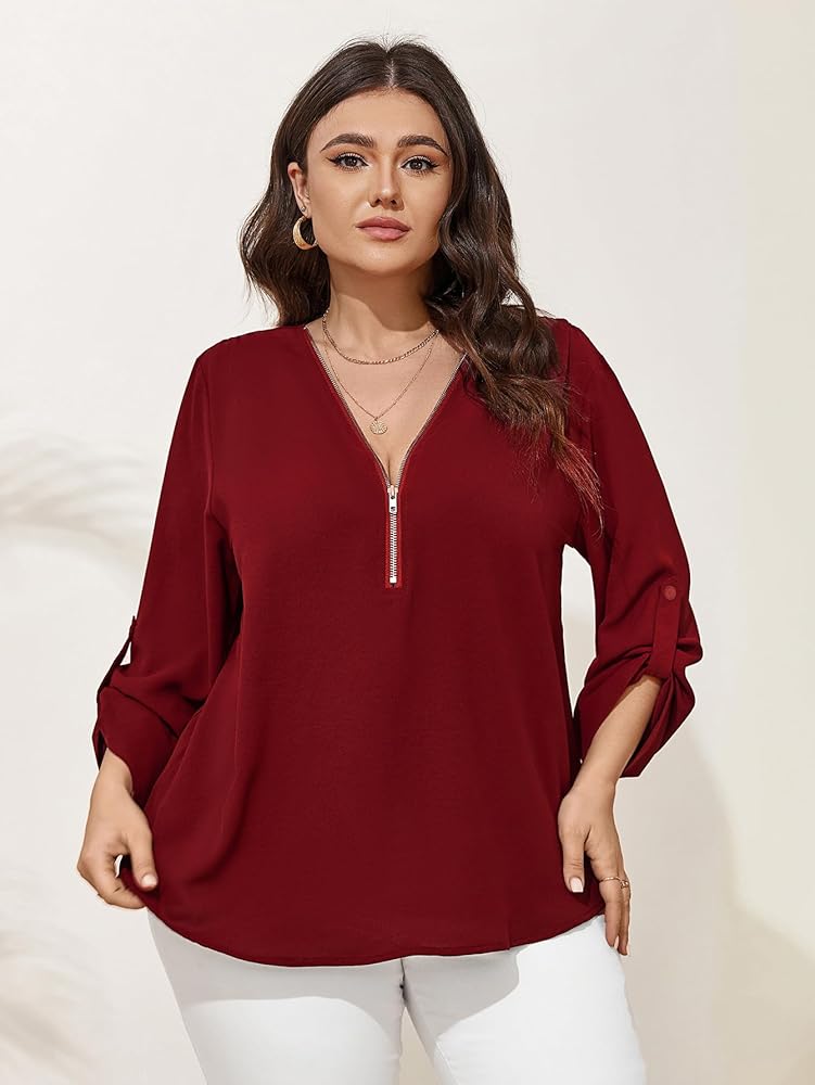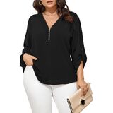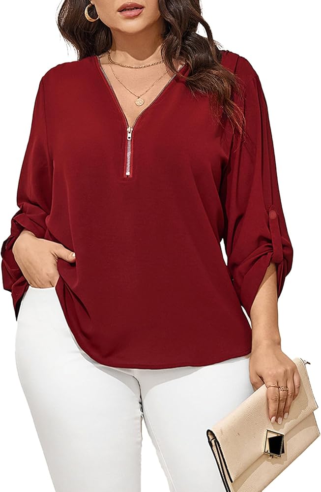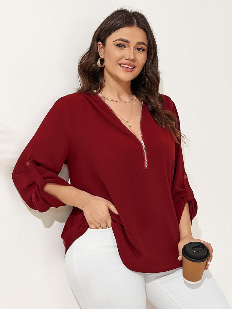 المواد: البلوزة النسائية ذات الحجم الكبير مصنوعة من 95% بوليستر، 5% إيلاستين. نسيج خفيف الوزن وناعم يمنحك شعورًا بالراحة طوال اليوم