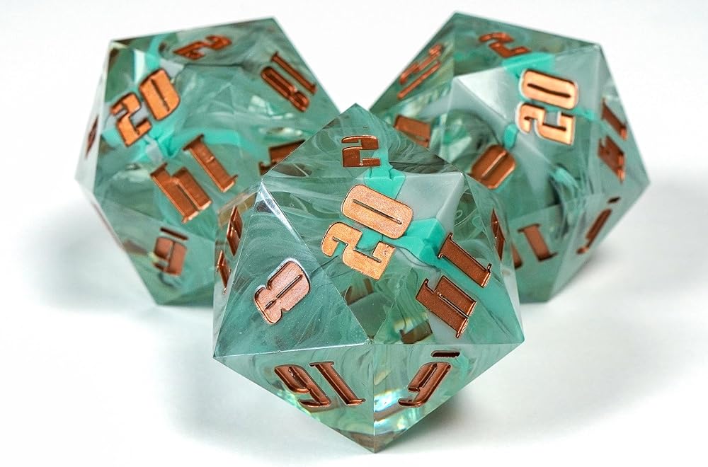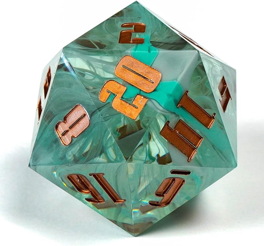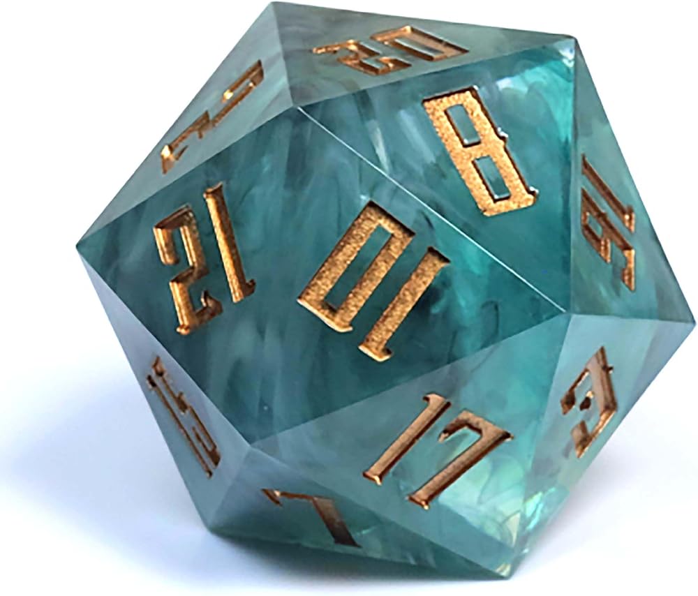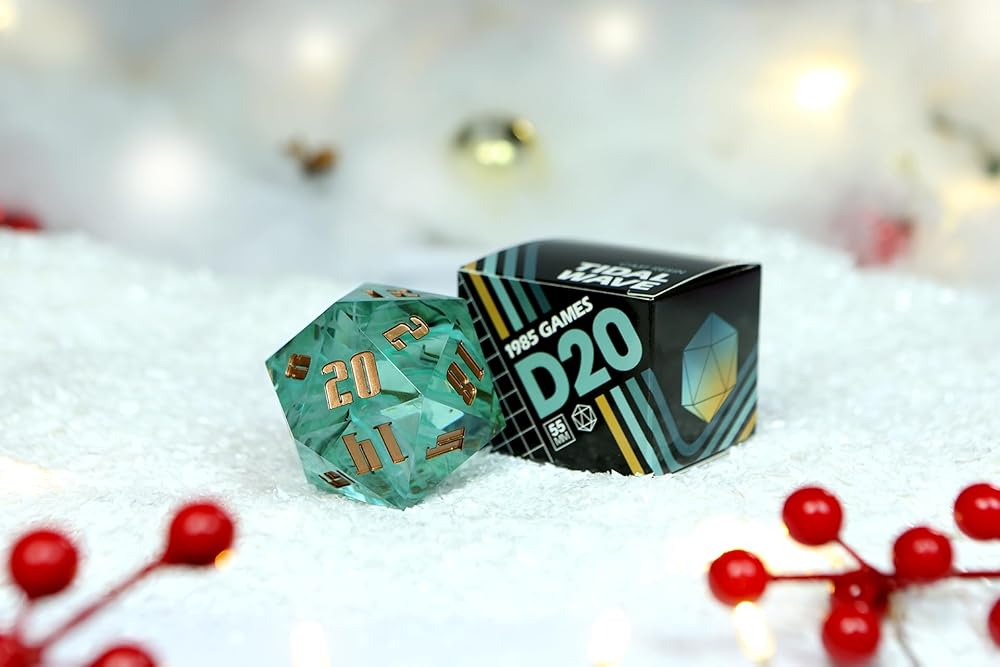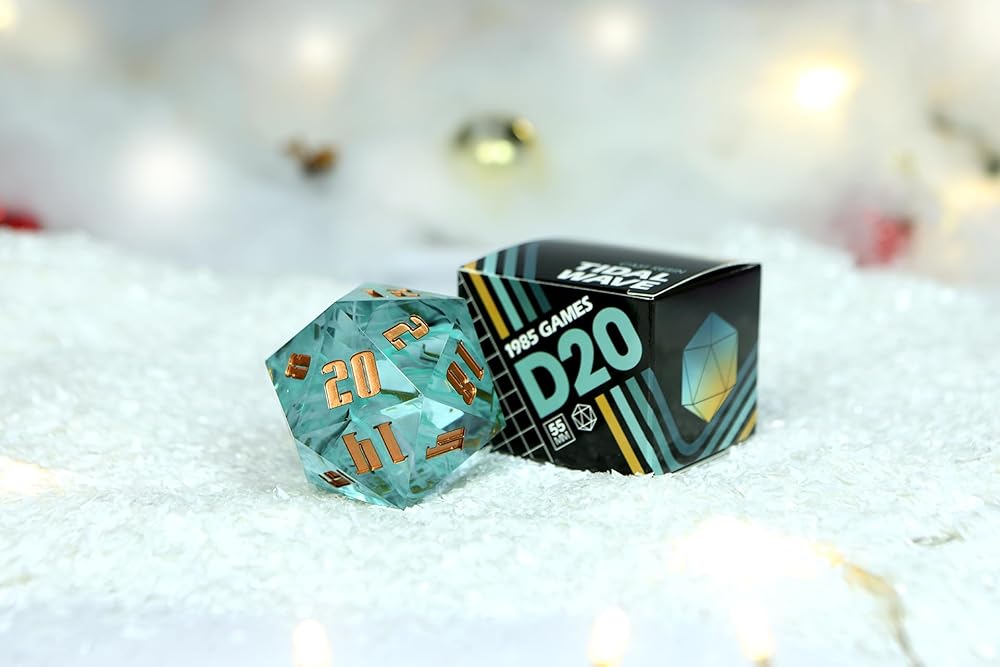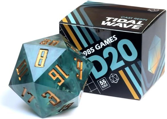 Sharp Edge 55MM D20 لـ DND لألعاب الزنزانات والتنينات Ttrpg، ألعاب لعب الأدوار متعددة السطوح من الراتنج | راتينج مصبوب يدويًا (موجة مد 55 مم d20)
