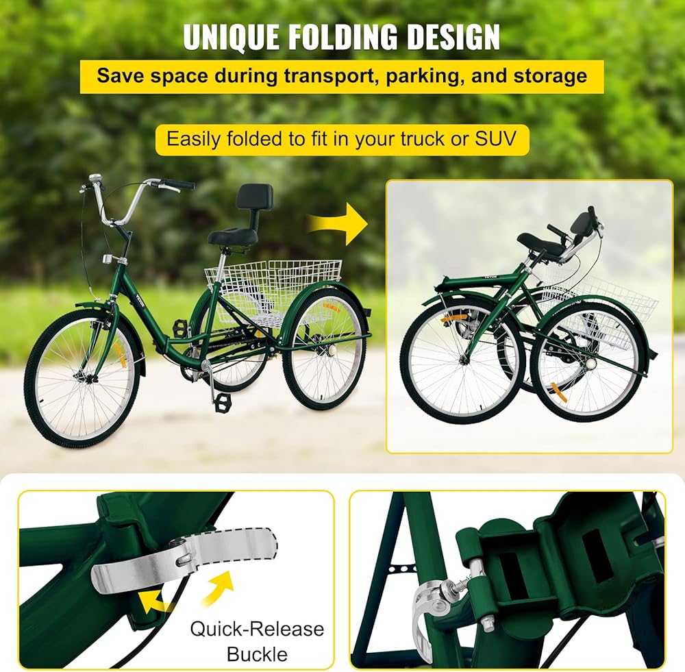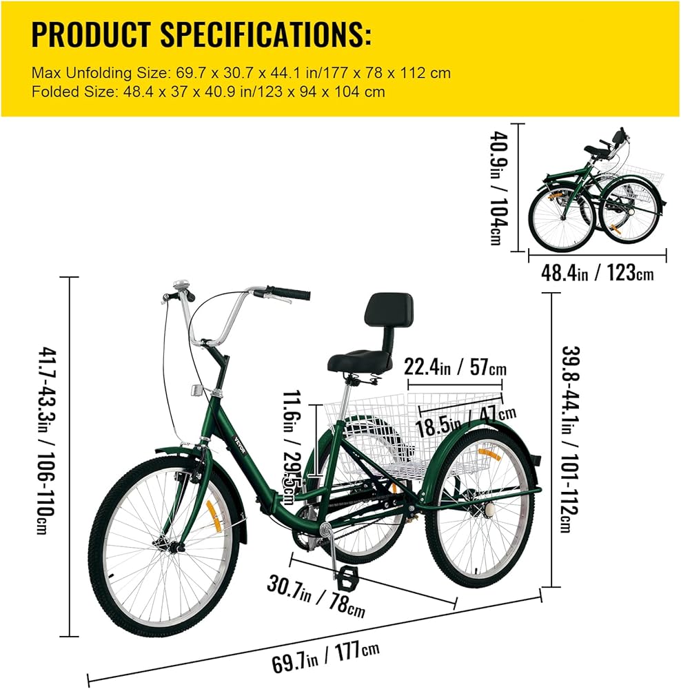 تصميم فريد قابل للطي: الحجم المطوي (الطول × العرض × الارتفاع): 48.4 بوصة × 37 بوصة × 40.9 بوصة/123 × 94 × 104 سم. بفضل الإبزيم سريع التحرير، يمكن طي دراجتنا ثلاثية العجلات للكبار بسهولة إلى النصف. يتيح التصميم سهولة النقل والتخزين الموفر للمساحة ومواقف مريحة عند طيها، ستتناسب الدراجة ثلاثية العجلات للبالغين بشكل مثالي مع شاحنتك أو سيارات الدفع الرباعي.