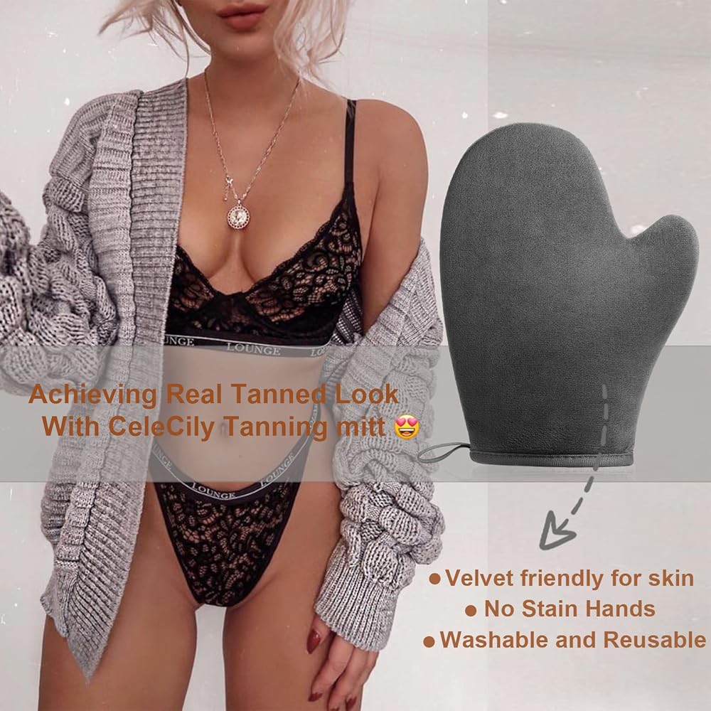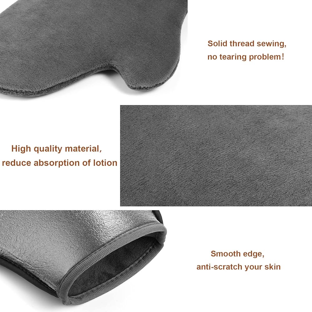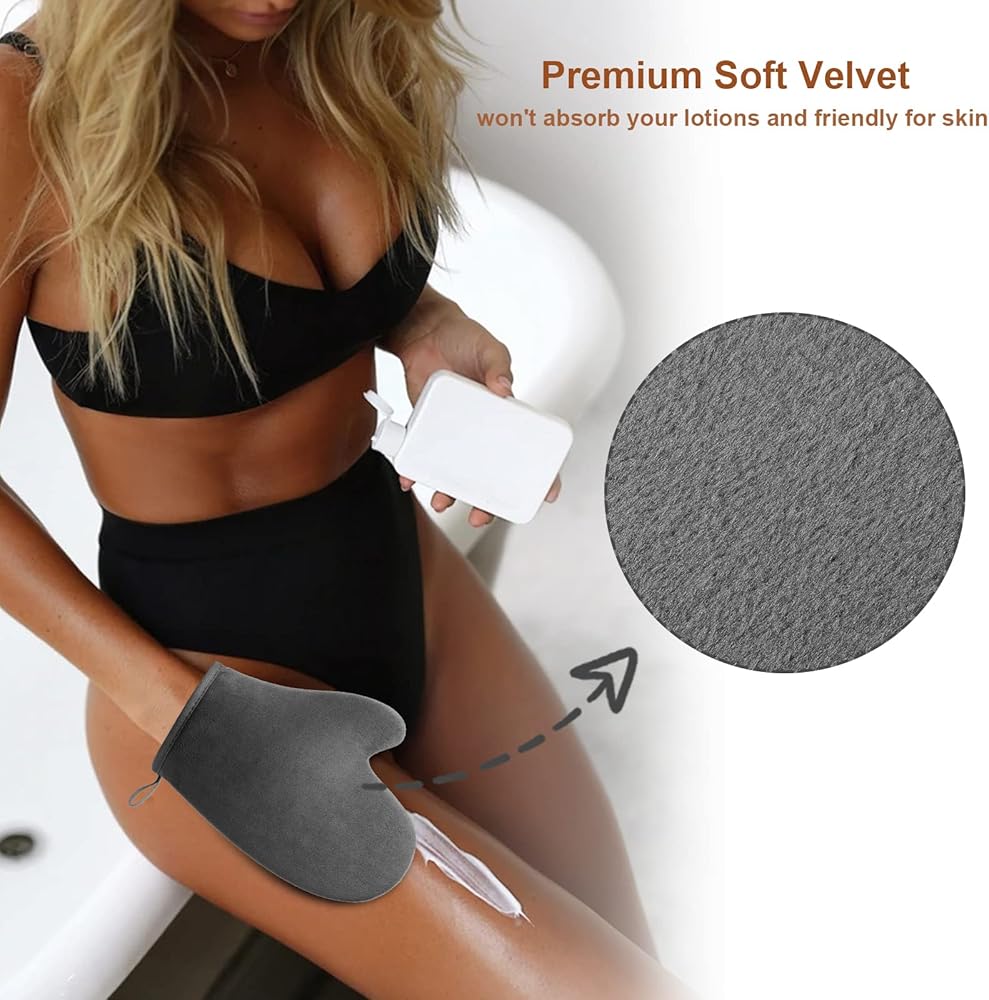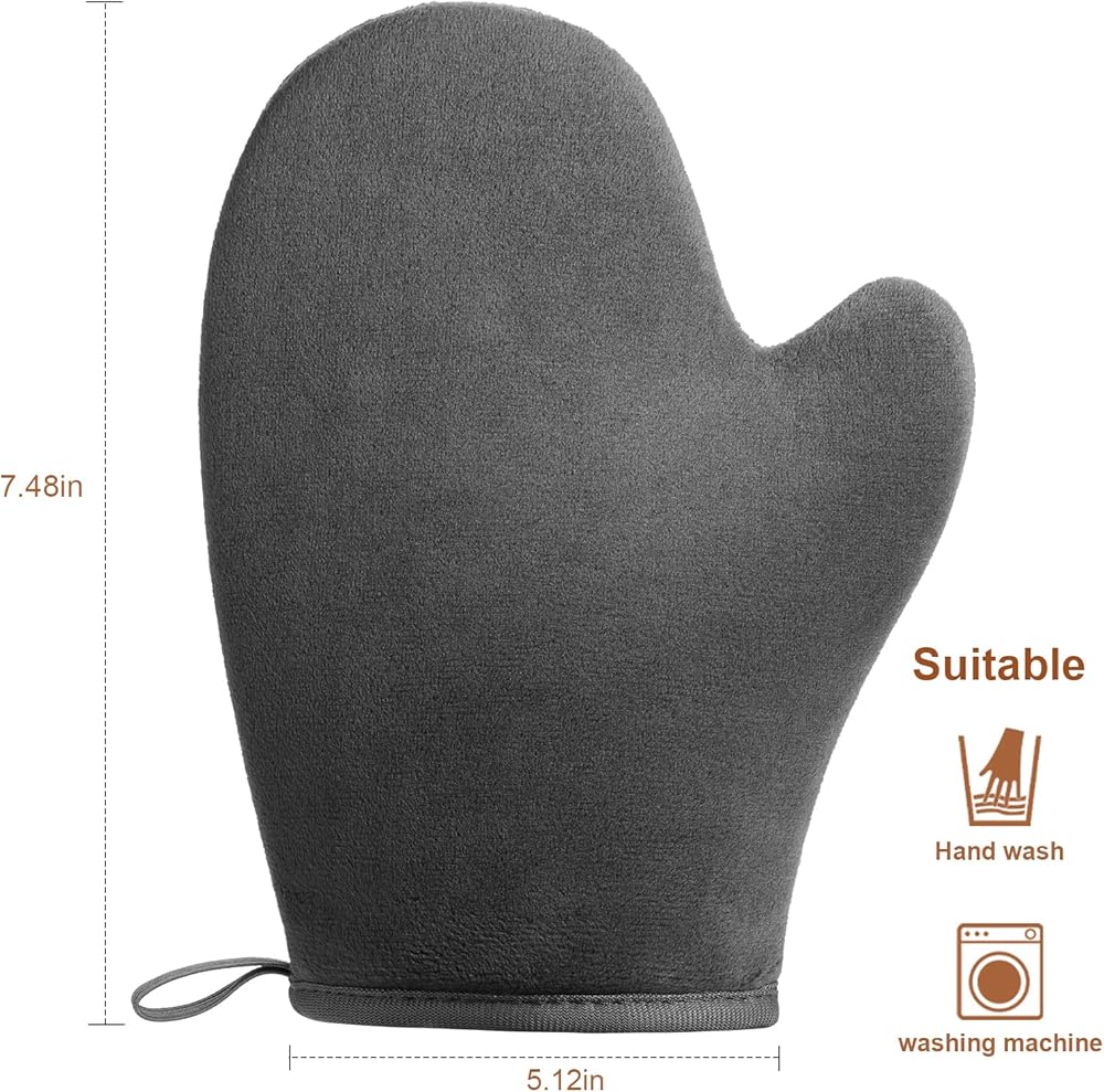 💝مادة صديقة للبشرة: قفاز التسمير هذا مصنوع من المخمل كنسيج خارجي، عندما تلمس أداة وضع قفاز التسمير الذاتي بشرتك، ستشعر بشرتك براحة إضافية، وقفاز التسمير الرمادي سهل التنظيف، يمكنك غسله يدويًا أو في الغسالة. يُغسل ويُجفف دون أن يفقد النعومة.