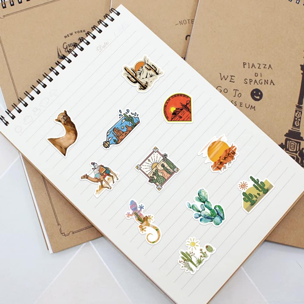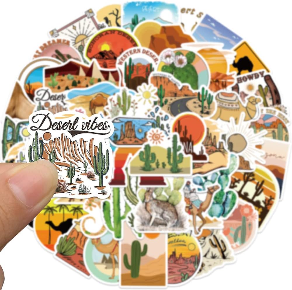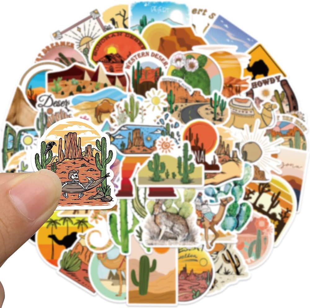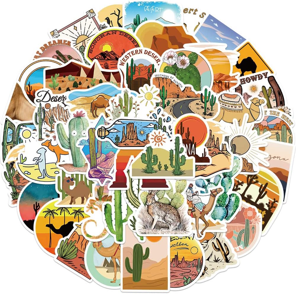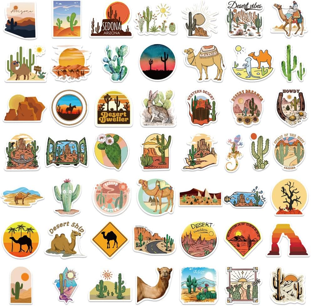 50 قطعة من ملصقات مغامرات الصحراء من الفينيل المقاومة للماء لزجاجة المياه والكمبيوتر المحمول والجيتار ولوح التزلج والدراجة النارية والدراجة النارية وقارورة مائية وحقيبة الأمتعة للبالغين والمراهقين (مغامرة الصحراء)