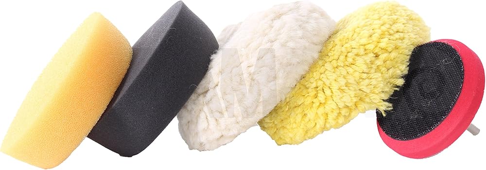 • مجموعة وسادات تلميع صغيرة مقاس 3 بوصات مكونة من 4 وسادات ولوحة داعمة ومحول مثقاب مقاس 1/4 بوصة