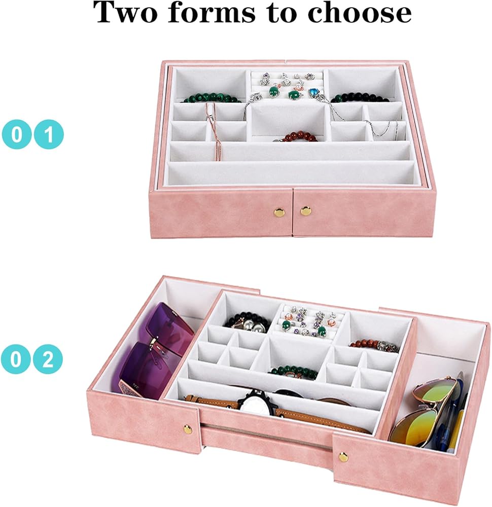 【صينية مجوهرات متقدمة】صندوق مجوهرات من جلد البولي يوريثان قابل للسحب يمكنه تخزين المجوهرات الراقية. لا يمكن استخدامها كهدية فحسب، بل يمكن استخدامها أيضًا كصندوق تخزين لسطح المكتب والأدراج.