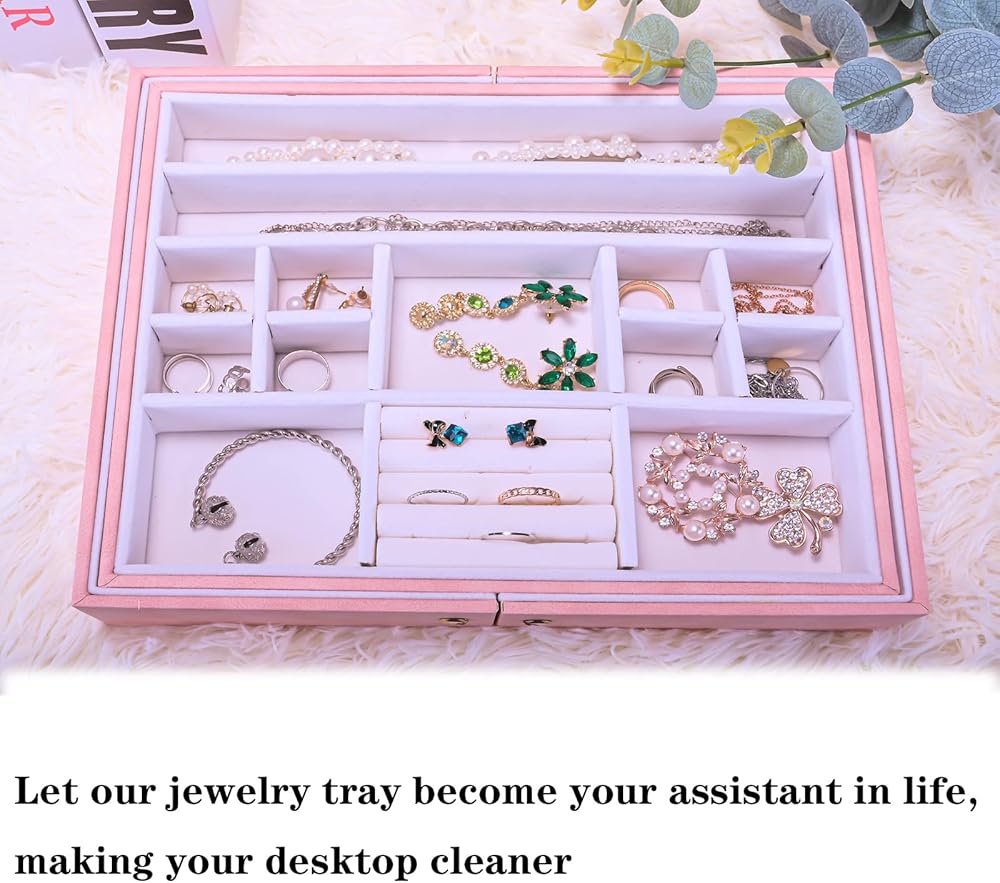 【خامة عالية الجودة】الجزء الداخلي من صواني المجوهرات هذه مصنوع من خشب ليفي متوسط الكثافة، وهو قوي ومتين. المنطقة التي يتم تخزين المجوهرات فيها ملفوفة بطبقة من الفانيلا الناعمة لحماية مجوهراتك.