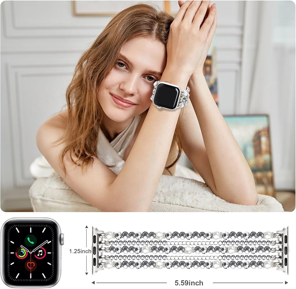 ⌚【الهدية المثالية】: سوار الساعة الجميل والفريد من نوعه القابل للتمدد هو خيار هدية مثالي للنساء والفتيات. سواء كان ذلك لحفل زفاف، أو عيد ميلاد، أو عيد الحب، أو عيد الميلاد، أو عيد الأم، أو رأس السنة، أو التخرج، أو عيد الشكر، فمن المؤكد أن سوار Apple Watch المطرز هذا سيثير الإعجاب والبهجة. امنح هدية الأناقة والرقي مع هذا الإكسسوار الرائع.