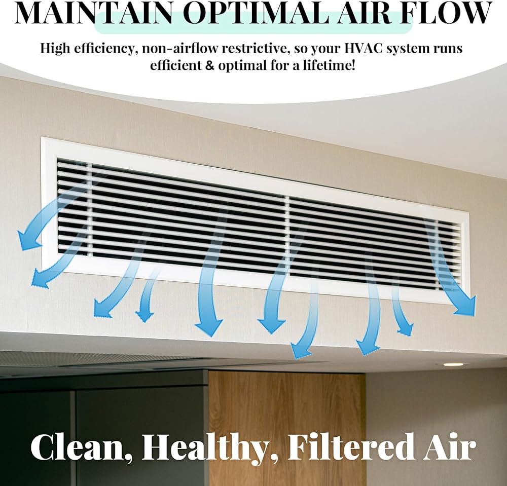 نظام الترشيح الثلاثي Merv 8: مصمم بشكل مثير للإعجاب مع ترشيح ثلاثي MERV 8، مجموعة مرشحات فتحات الهواء تحبس جزيئات الهواء الضارة لمنع الأعراض الصحية السيئة مثل السعال والعطس وتهيج العيون؛ ينقي الهواء الذي تتنفسه من مكيفات الهواء والسخانات بشكل فعال، مما يسمح لك باستنشاق هواء أنظف كل يوم؛ يوصى باستبدال الفلتر كل 3-6 أشهر