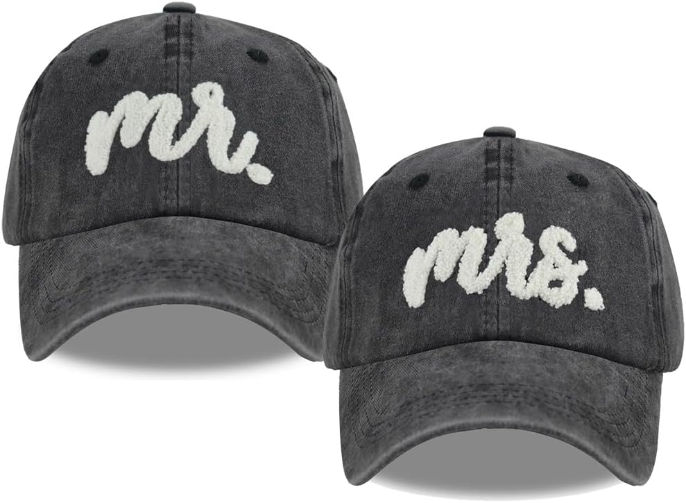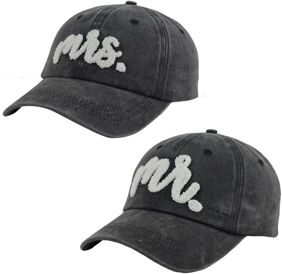2 قطعة قبعات للأب للأزواج من MR MRS، قبعات بيسبول مطرزة قابلة للتعديل من القطن المغسول لشهر العسل لحفلات الزفاف