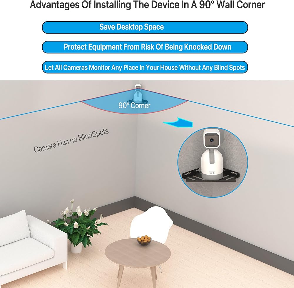 تغطية كاملة: تم تصميم الدعامة المصنوعة من الفولاذ المقاوم للصدأ خصيصًا لكاميرات الأمان الداخلية، ويتم تركيبها بشكل مريح في زاوية 90 درجة من غرفتك، مما يضمن تغطية مراقبة شاملة بدون نقاط عمياء.
