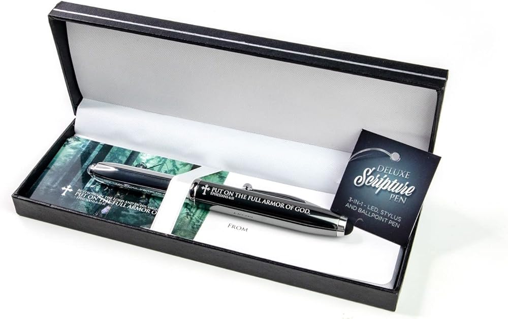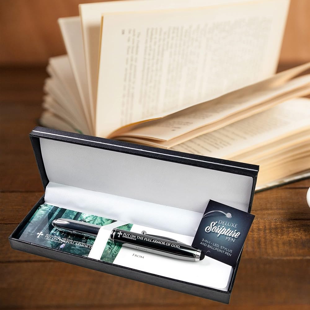 حافظة أنيقة وبطاقة هدايا - يأتي قلم الكتاب المقدس الخاص بنا في علبة أنيقة ويأتي مع بطاقة هدايا يمكن استخدامها أيضًا كعلامة مرجعية. هذه الأقلام المنقوشة تمثل هدايا مثالية للرجال وأقلام تحفيز للنساء على حد سواء.