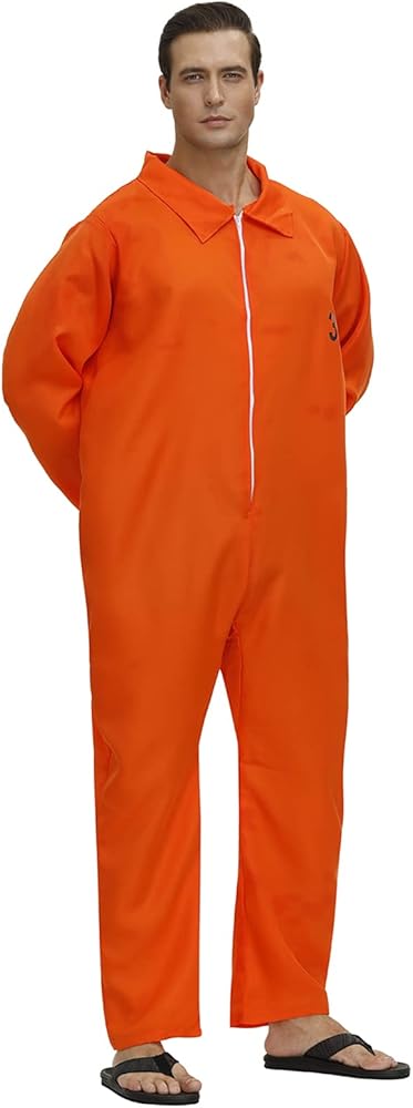 - بذلة السجين البرتقالية: زي السجن البرتقالي للبالغين مصنوع من البوليستر والألياف اللدنة، سهل الارتداء، من القماش البرتقالي.