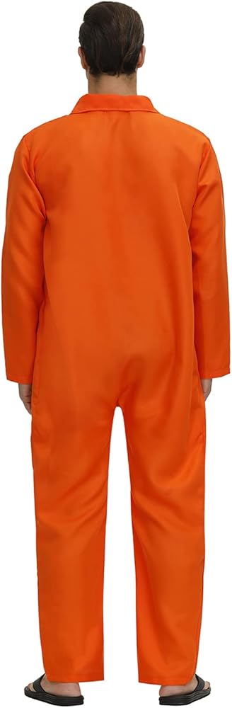 - ميزات زي السجن: زي المحكوم عليه العلوي مع سحاب للإغلاق، بذلة سجن برتقالية واسعة ومريحة في الارتداء.