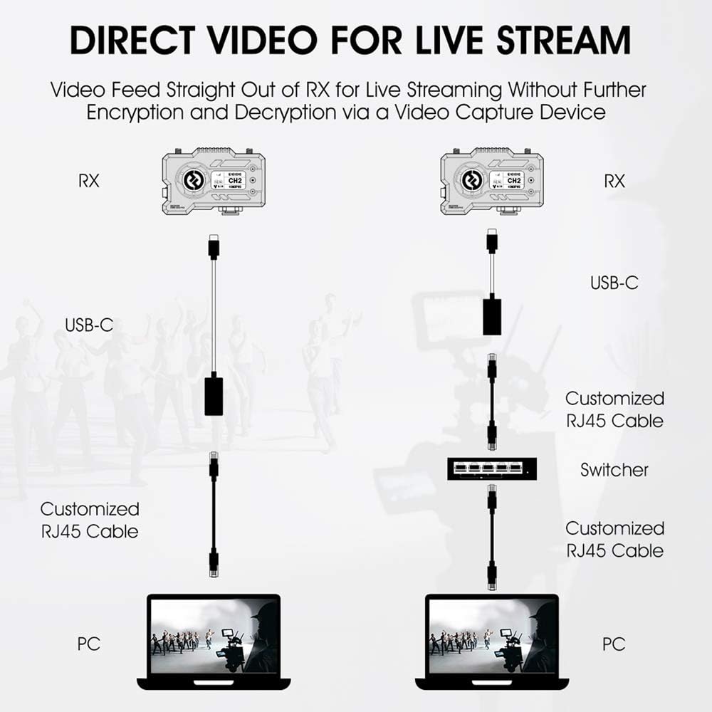 🏆[فيديو مباشر للبث المباشر] مع 400S PRO، سيتم استخدام تغذية الفيديو مباشرة من RX للبث المباشر على OBS أو vMix أو VLC على جهاز الكمبيوتر الشخصي الخاص بنا دون مزيد من التشفير وفك التشفير عبر جهاز التقاط الفيديو.