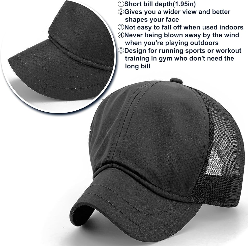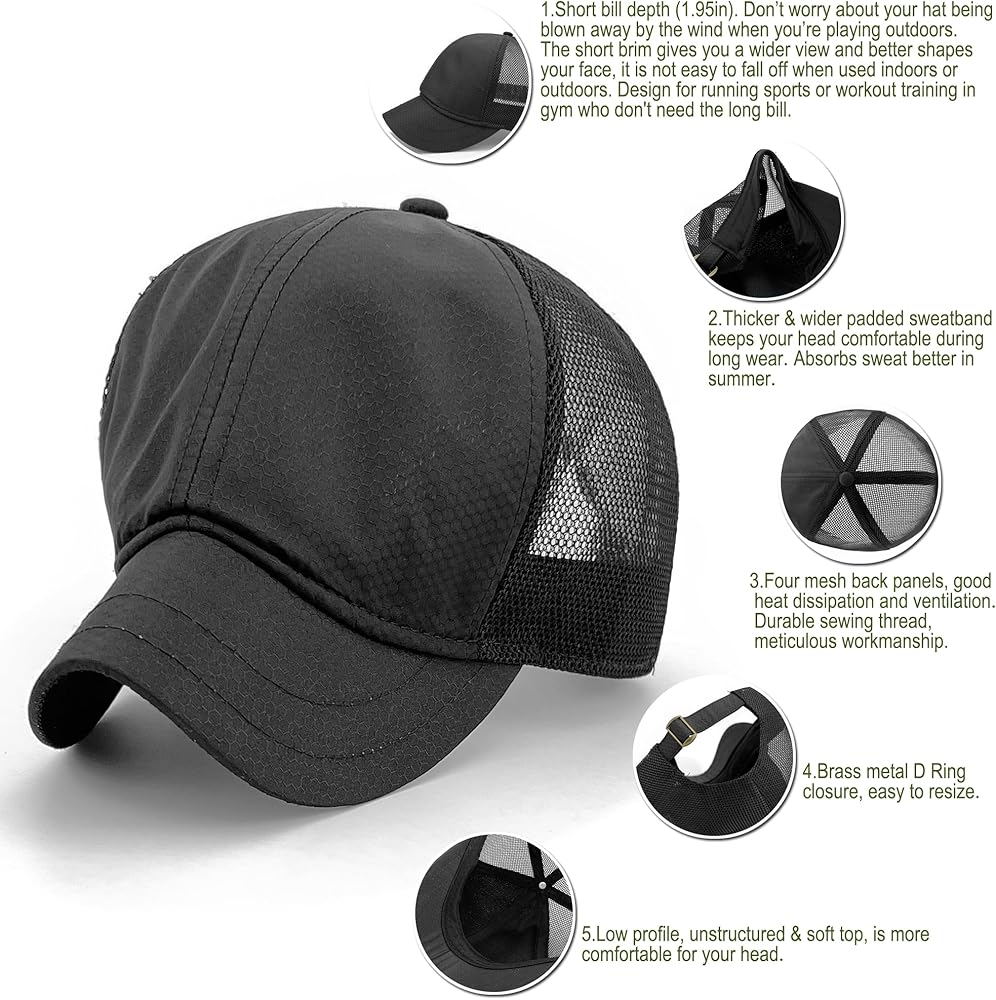 【تصميم القبعة】: قبعات بيسبول ذات حافة قصيرة سريعة الجفاف مقاس 1.95 بوصة للرجال. 6-ألواح، غير منظمة. قبعة بيسبول قصيرة الحافة للنساء بشريط خلفي قابل للتعديل مع إبزيم حلقة على شكل حرف D من النحاس. قبعات قصيرة الحافة للرجال مع عصابة رأس مبطنة أكثر سمكًا وأوسع تحافظ على رأسك جافًا أثناء ارتدائها لفترة طويلة، وتمتص العرق بشكل أفضل في أيام الصيف المشمسة. قبعة قصيرة ذات مظهر منخفض وقابلة للتعديل، إطار لوجهك جيدًا، مصممة للجري أو التدريب في صالة الألعاب الرياضية الذين لا يحتاجون إلى قبعة طويلة.