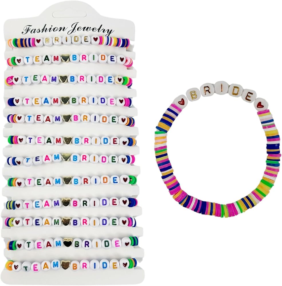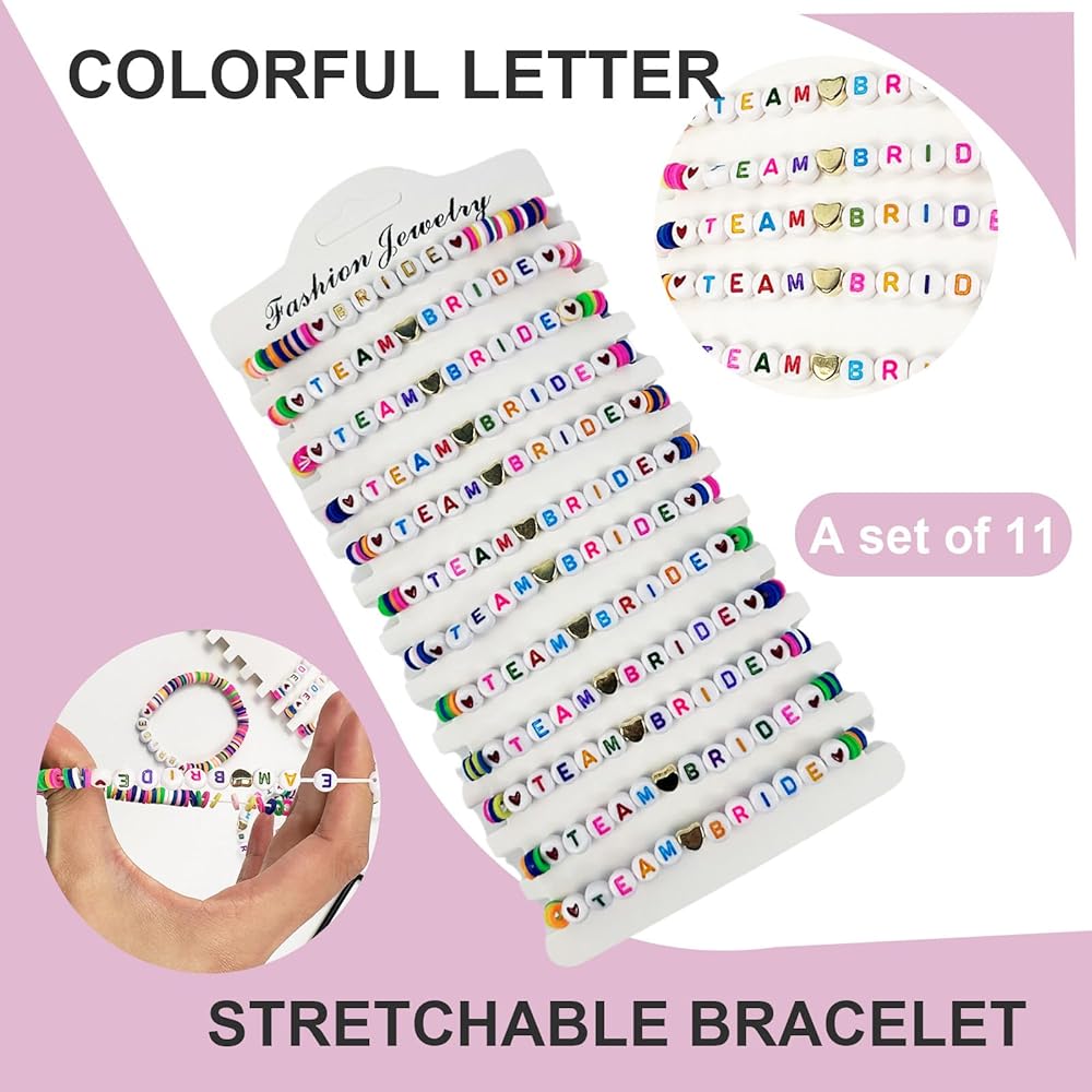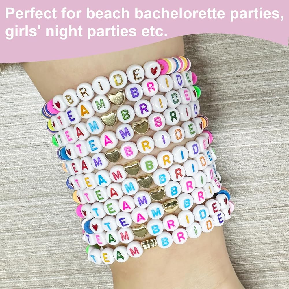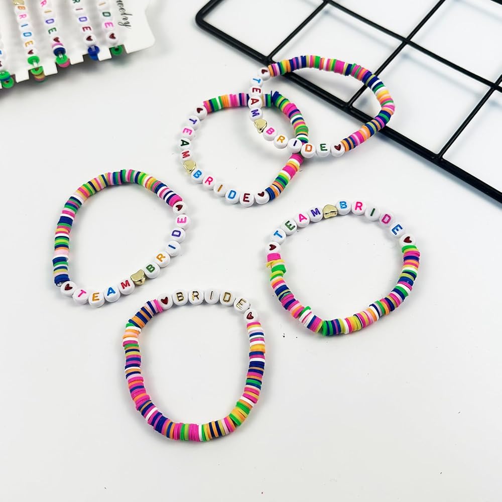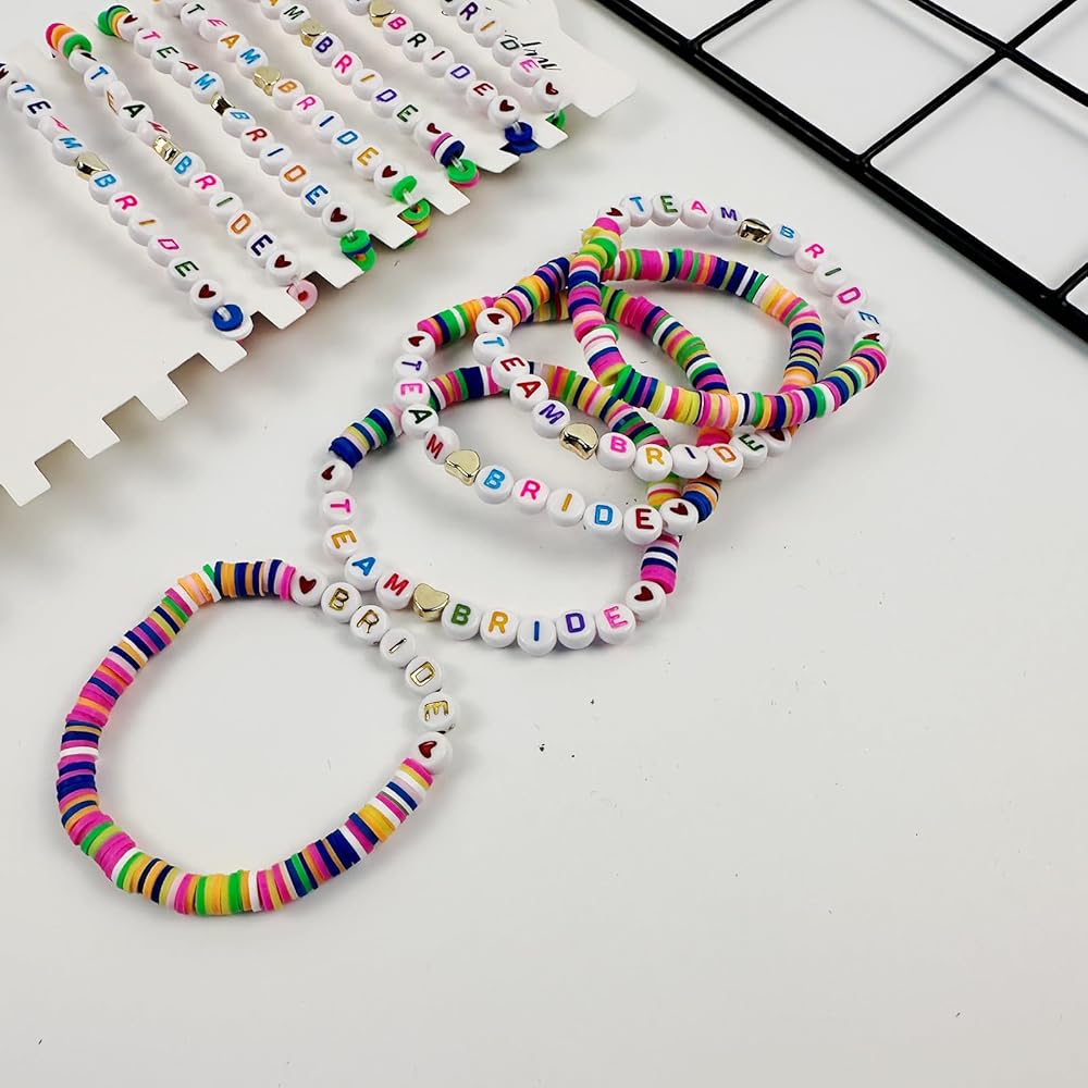 ✨【خامة فاخرة】أساور الفريق العروس مصنوعة من الطين عالي الجودة وخرز حروف أكريليك متعدد الألوان، سطح أملس، مريح في الارتداء، مقاوم للماء ولا يبهت.