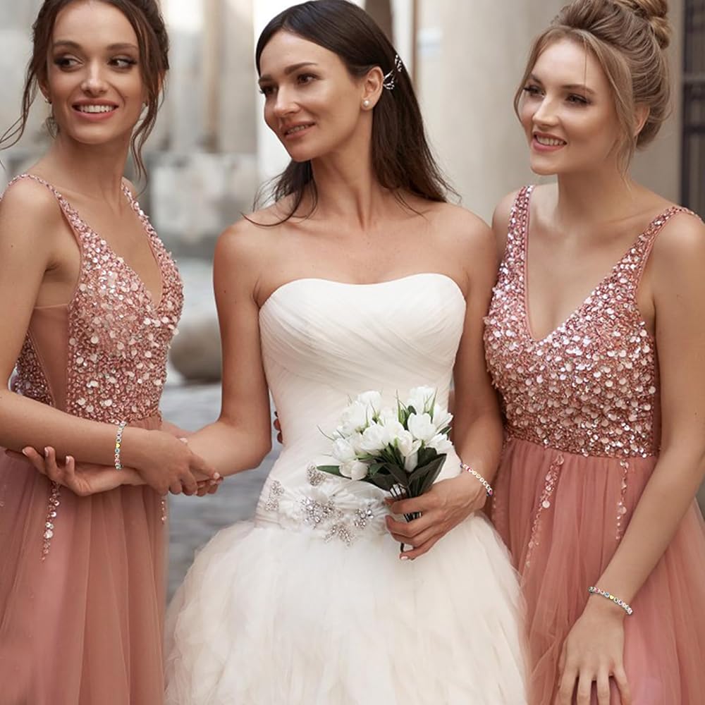 ✨【هدية مثالية】أساور العروس الملونة للفريق هي الهدية المثالية لوصيفات العروس، فهي لطيفة جدًا، وتمنح هذه الهدية القلبية لفتياتك!