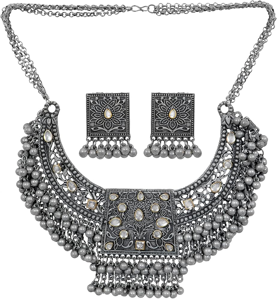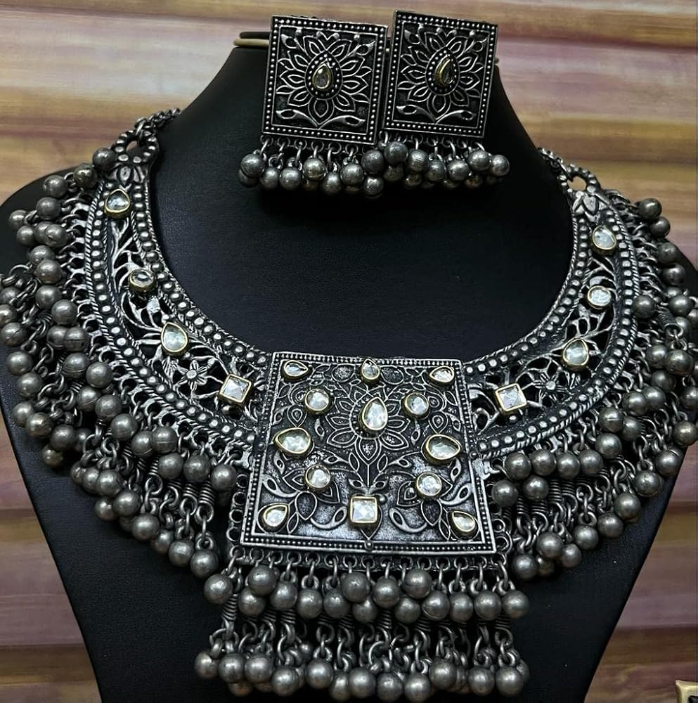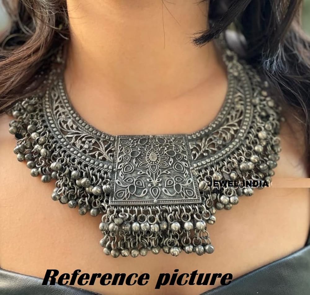 الهندي الأفغاني بانجارا الفضة المؤكسد الأسود البولندية الغجر بوهو غونغرو أجراس مرآة الخرز بيان كوتشي المختنق قلادة أقراط مجوهرات