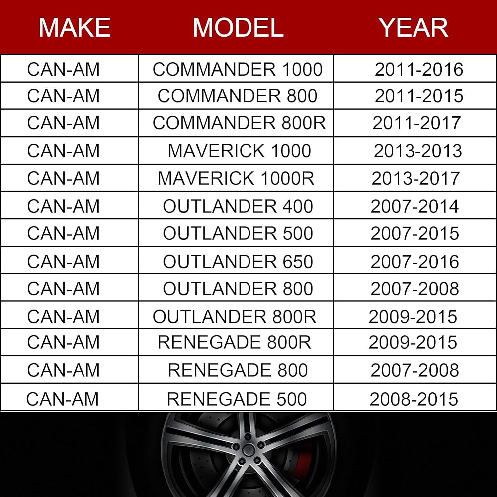 【التوافق】--- متوافق مع 2003-2005 أوتلاندر 330، 2003-2014 أوتلاندر 400، 2007-2015 أوتلاندر 500، 2006-2016 أوتلاندر 650، 2009-2015 أوتلاندر 800R، 2011-2016 كوماندر 800 1000، 2011- 2017 كوماندر 800R ، 2008-2015 Renegade 500,2007-2008 Renegade 800 ، 2009-2015 Renegade 800R ، 1988-2002 Bayou 220 ، 2003-2011 Bayou 250 ، 1985-2004 Bayou 300 ، 1993-1999 Bayou 400