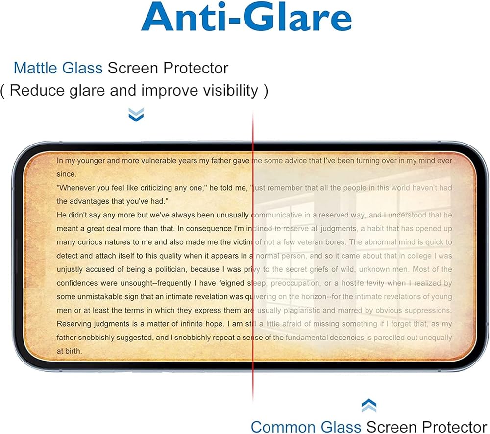 【مضاد للتوهج】الزجاج المقسى بلمسة نهائية غير لامعة باستخدام نفس التقنية التي تستخدمها شاشة Kindle E-reader غير اللامعة، بدون وهج الشاشة، حتى في ضوء الشمس الساطع، بدون إبهار، سهولة القراءة تحت الضوء.