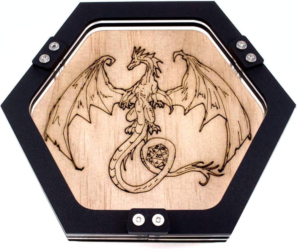 - تم تصميم تصميم D20 Dragon بواسطة فنان محلي، وهو محفور بالليزر على الخشب للحصول على سطح متين وفريد من نوعه.