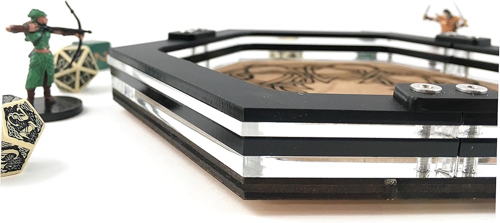 - صينية النرد مقاس 5.5 بوصة × 7 بوصة × 1 بوصة - مصنوعة من الخشب والأكريليك والفولاذ المقاوم للصدأ. حجم صينية النرد الشخصية المثالية.