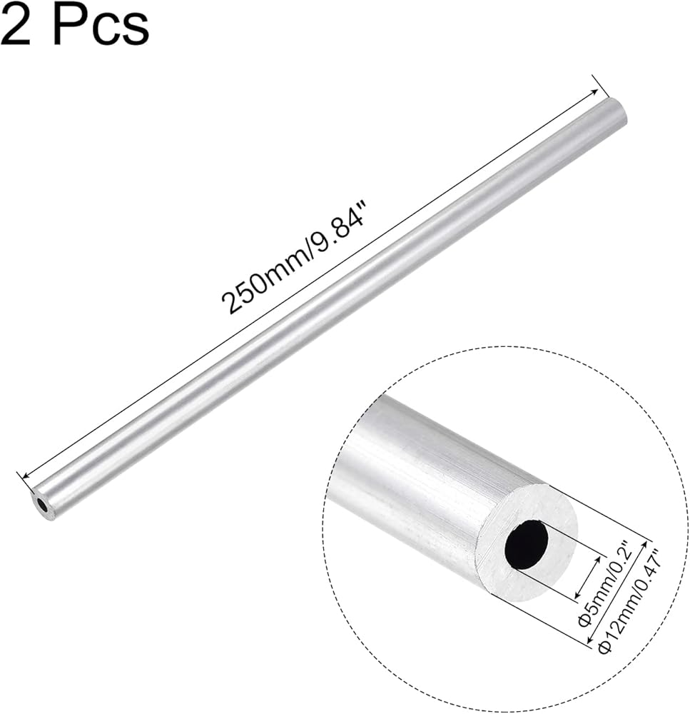 Uxcell 6061 أنبوب ألومنيوم دائري 12 مم OD 5 مم ضياء داخلي 250 مم طول الأنابيب 2 قطعة