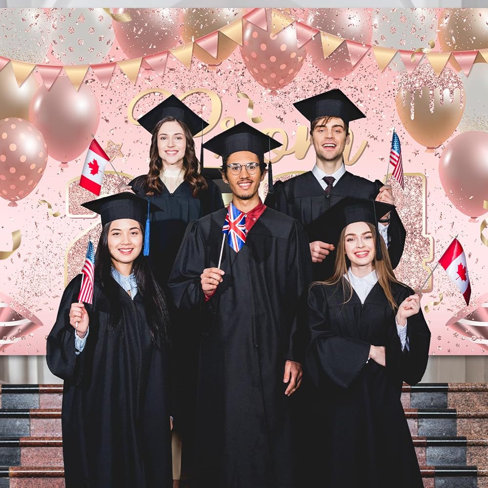 ديكورات الحفلات الراقصة 2024، لافتة خلفية باللون الوردي الوردي، وزخارف حفلات التخرج، وحفلات التخرج، ليلة إرسال فئة من 2024، لوازم الحفلات للاحتفال بخلفية صور حفلات التخرج