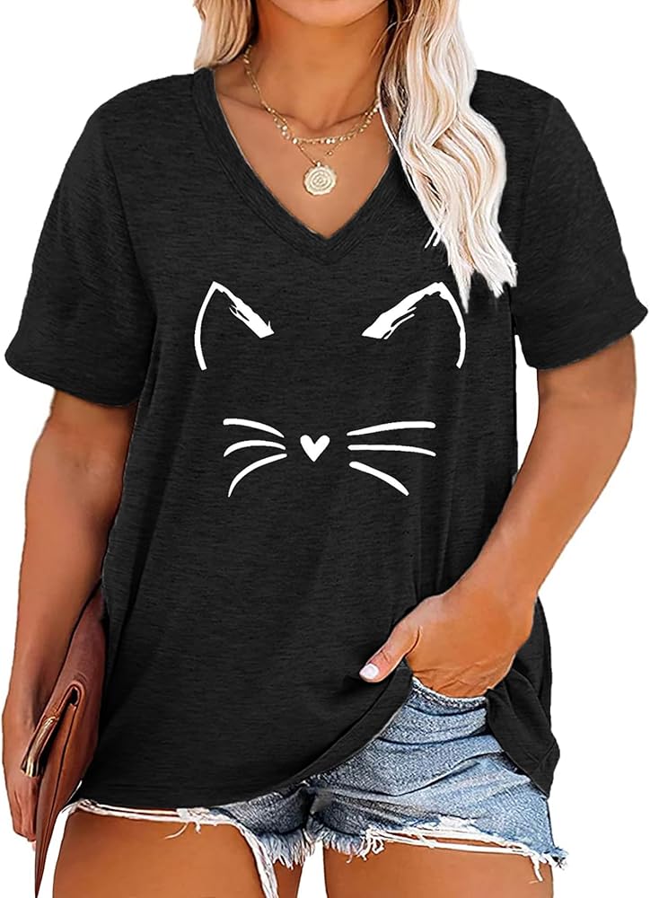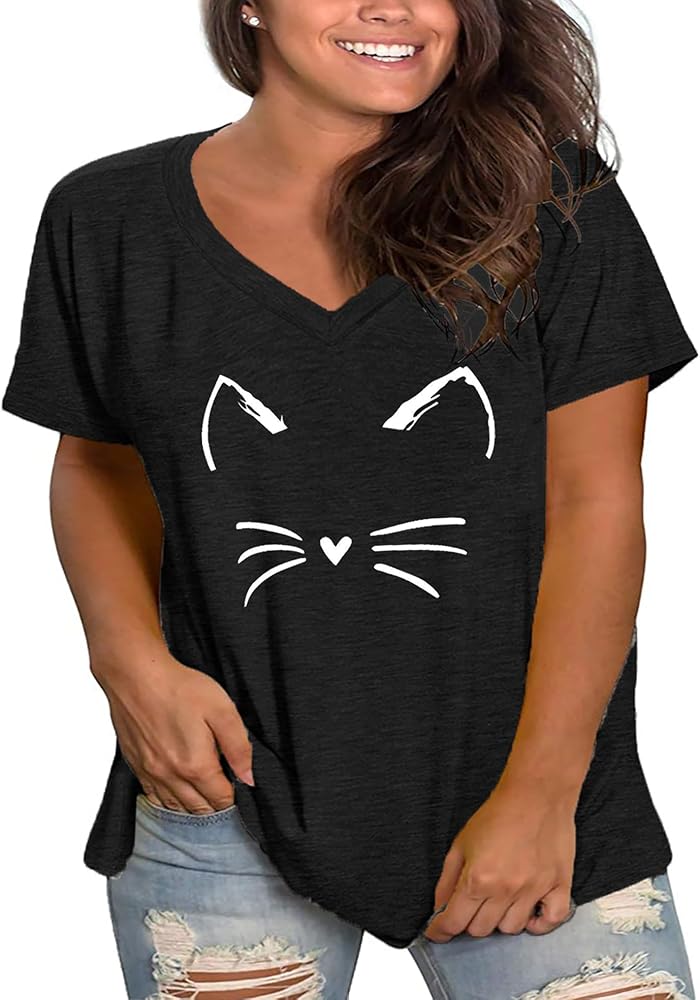 【المميزات】تتميز هذه التيشيرتات النسائية ذات الحجم الكبير بطباعة قطة مفعمة بالحيوية، ورقبة على شكل حرف V، وأكمام قصيرة، وتغطية بطول الورك، وقص فضفاض وفضفاض. تيشيرت أنيق وعصري بمقاس كبير يجب أن تمتلكه في خزانة ملابسك.