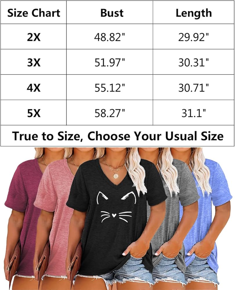 【مقاس أمريكي كبير】مقاس مضبوط، المقاس المعتاد سيكون جيدًا. يمكنك أيضًا الرجوع إلى جدول المقاسات الخاص بنا في الصورة الأخيرة. 2X، 3X، 4X، 5X توب تونيك بمقاسات كبيرة. تتوفر ألوان مختلفة لهذه القمصان الصيفية ذات الحجم الكبير.