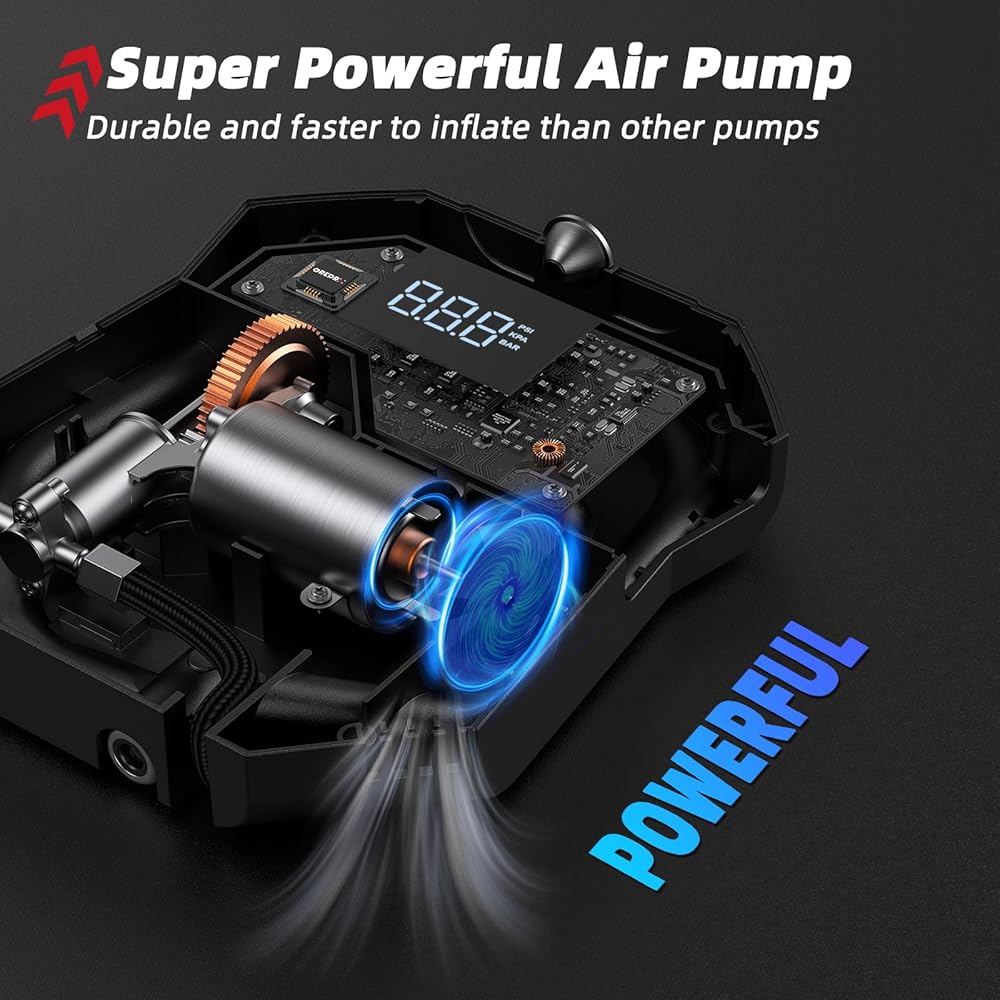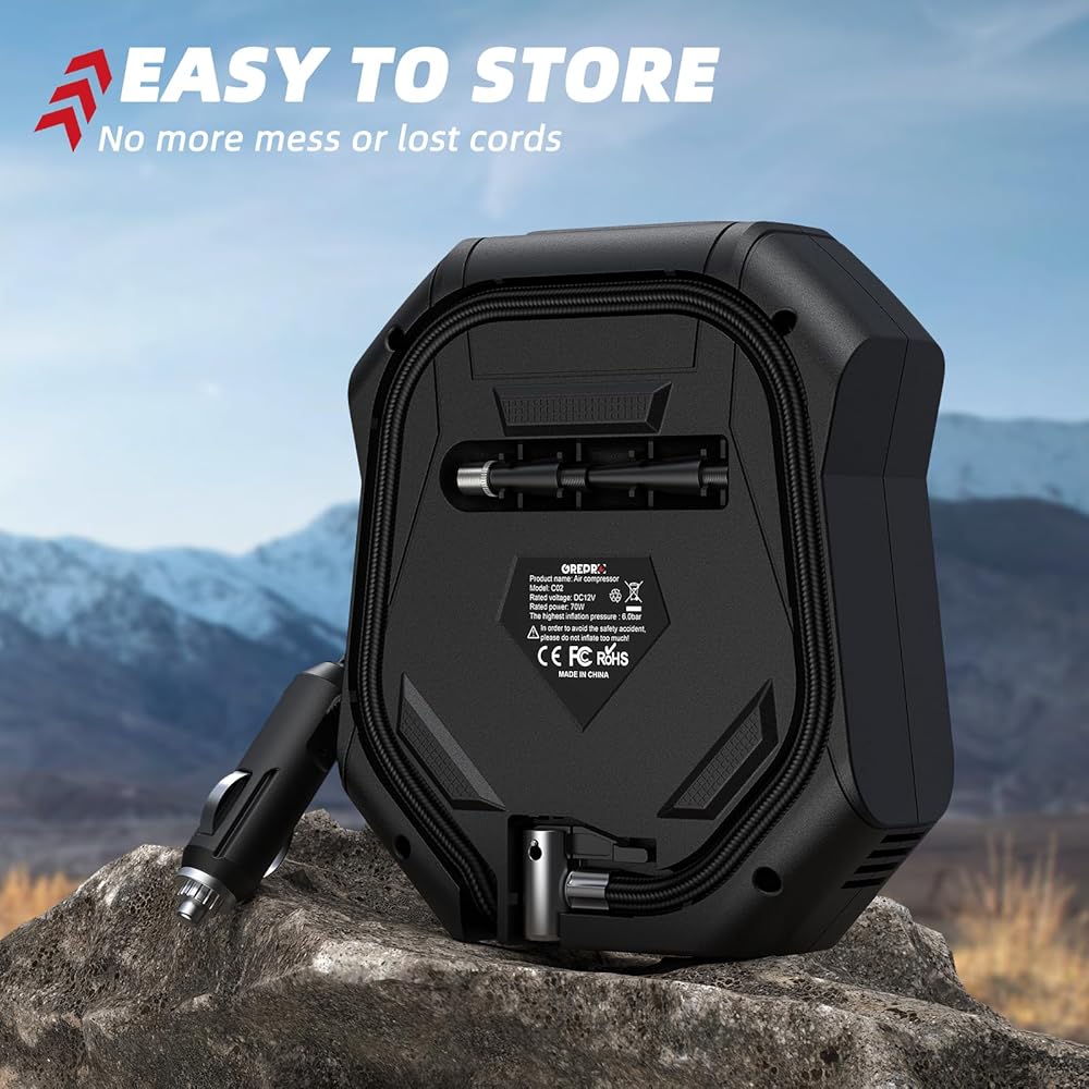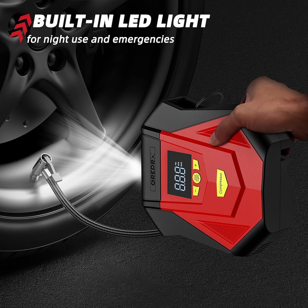 [إيقاف التشغيل التلقائي]: استمتع بتجربة خالية من القلق مع مضخة هواء السيارة GREPRO، التي تتميز بوظيفة الإغلاق التلقائي. اضبط مستوى الضغط المطلوب واترك التضخم يبدأ. بمجرد الوصول إلى الضغط المحدد مسبقًا، سيتم إيقاف تشغيل ضاغط الهواء تلقائيًا، مما يضمن عدم حدوث تضخم زائد. (فقط تذكر أن تضبط ضغطًا أعلى من الضغط الحالي لإطارك.) بسيط وآمن وفعال.