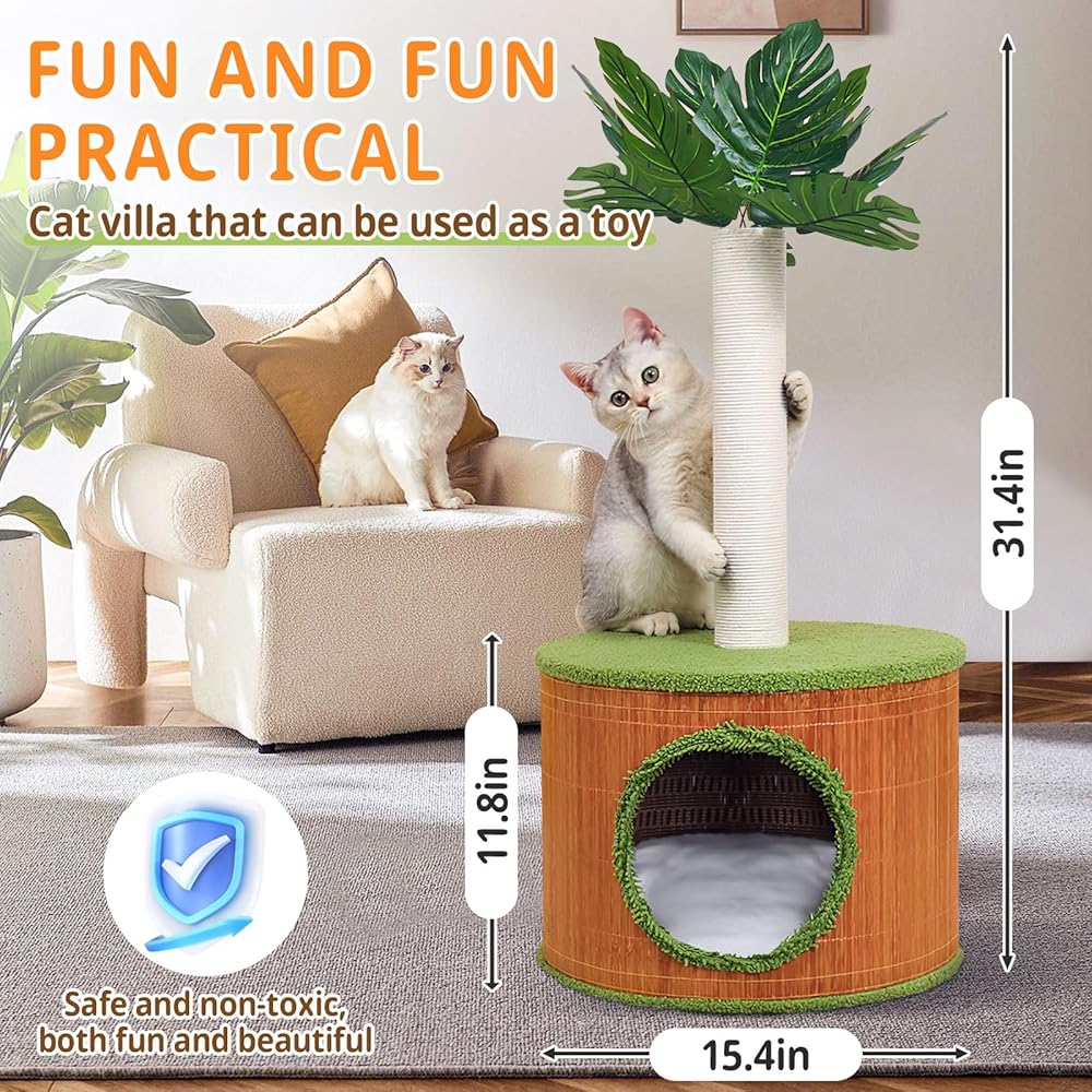 【مواد عالية الجودة】مصنوعة من مواد عالية الجودة، وهي ذات هيكل قوي ومبني بشكل جيد، مما يضمن بقاء الشجرة لفترة طويلة حتى مع الاستخدام المتكرر. إنها مناسبة جدًا للقطط الصغيرة والقطط الصغيرة وبعض القطط متوسطة الحجم، المساعدة في تنظيف أظافر قطتك.