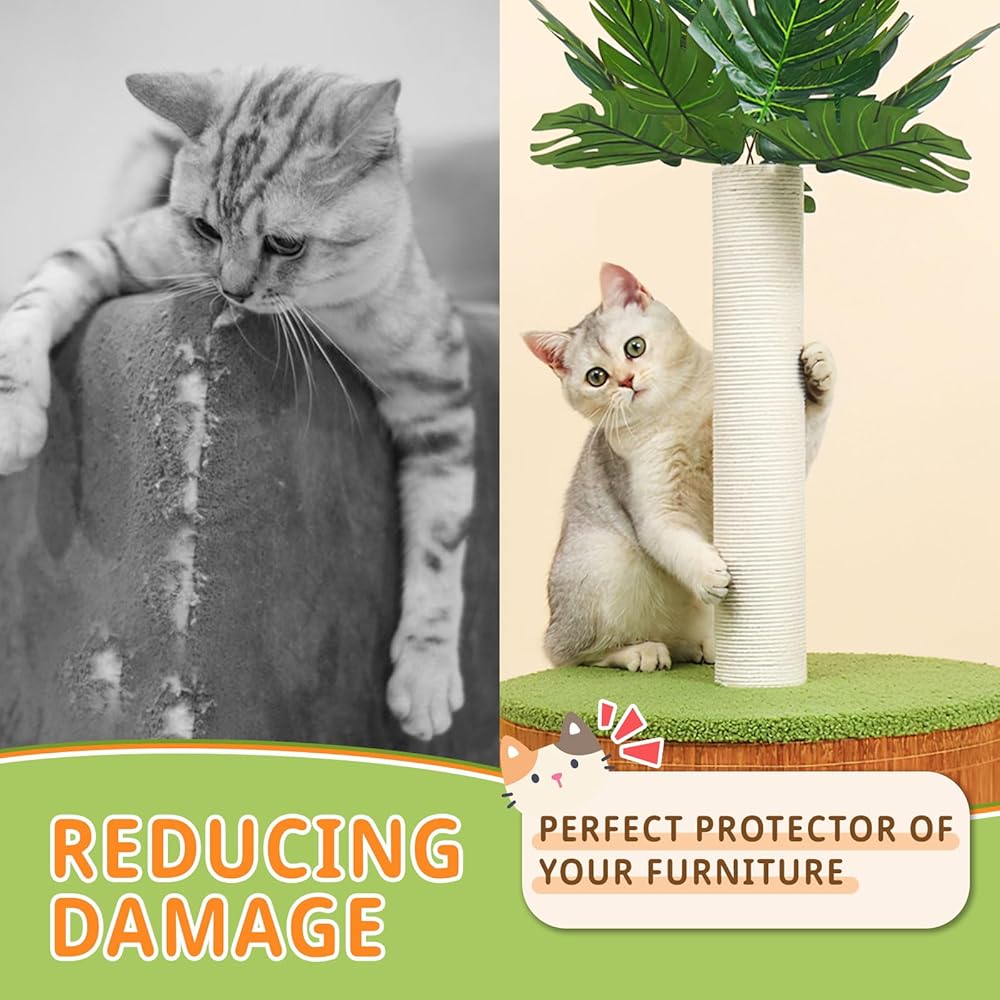 【عمود خدش للقطط متعدد الوظائف】لقد تحملت أعمدة الخدش المصنوعة من السيزال مخالبها الصغيرة، مما يوفر على الأرائك والكراسي الخاصة بك من أن تصبح قماشها. إنه ليس مجرد مكان لهم للخدش، التصميم التفاعلي على شكل شجرة، والذي يضيف لمسة من غريبة الأطوار في مساحة المعيشة وتعمل كأداة تدريب ممتازة للقطط الصغيرة.