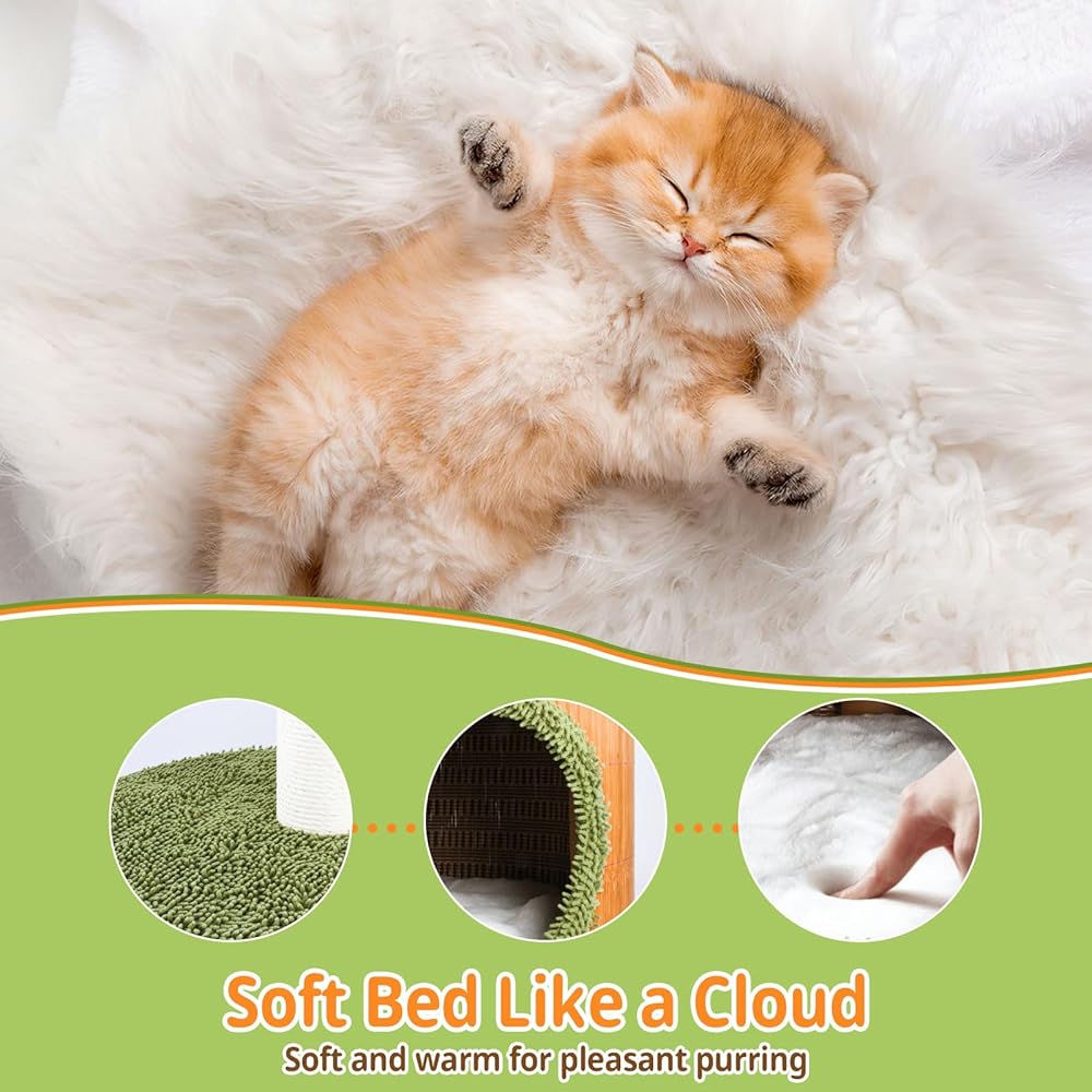【سهلة التجميع】تتضمن تعليمات واضحة وسهلة الاتباع، والمكونات المختلفة متصلة بإحكام وقوة. ولا يستغرق الأمر سوى بضع دقائق لإكمالها، وتوفر الشقة الدائرية للقطط أماكن راحة واختباء مريحة.