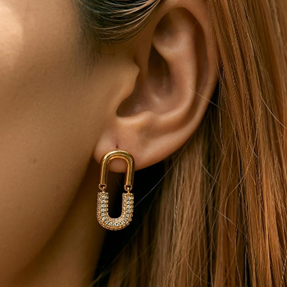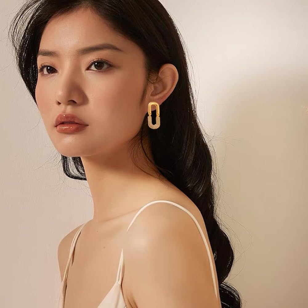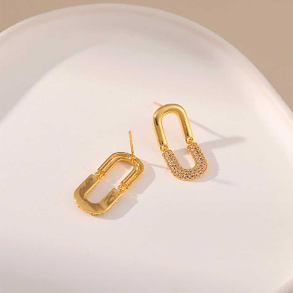[أقراط ربط السلسلة]: الأقراط ذات الوصلات الهندسية الحديثة مصنوعة من مواد عالية، مقاس الأقراط حوالي 1.06 × 0.35 بوصة، صغيرة ولطيفة وخفيفة الوزن ومريحة في الارتداء.