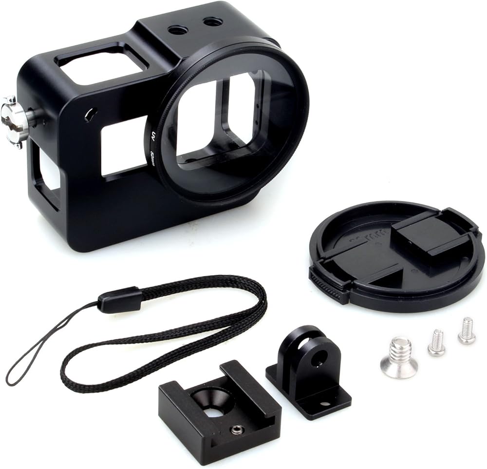 حافظة واقية صلبة بهيكل عظمي من سبائك الألومنيوم مع فلتر للأشعة فوق البنفسجية مقاس 52 مم لكاميرا Gopro Hero 6 5 - وضع زاوية واسعة لا يحتوي على تظليل -HolaFoto