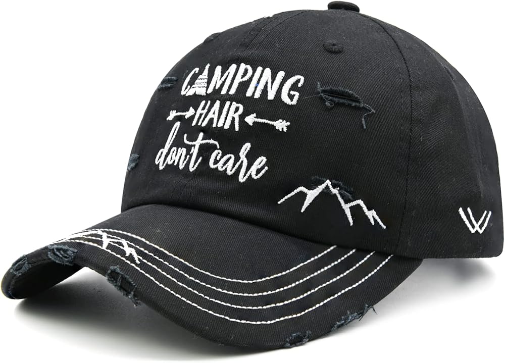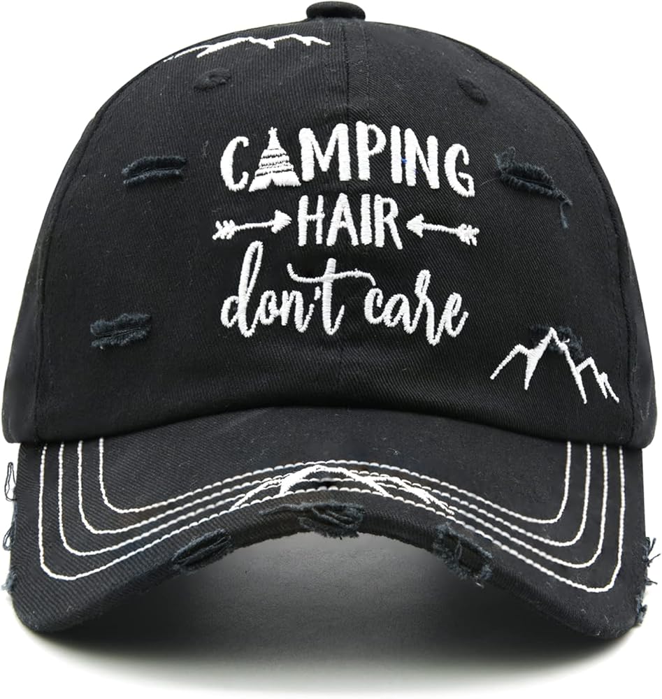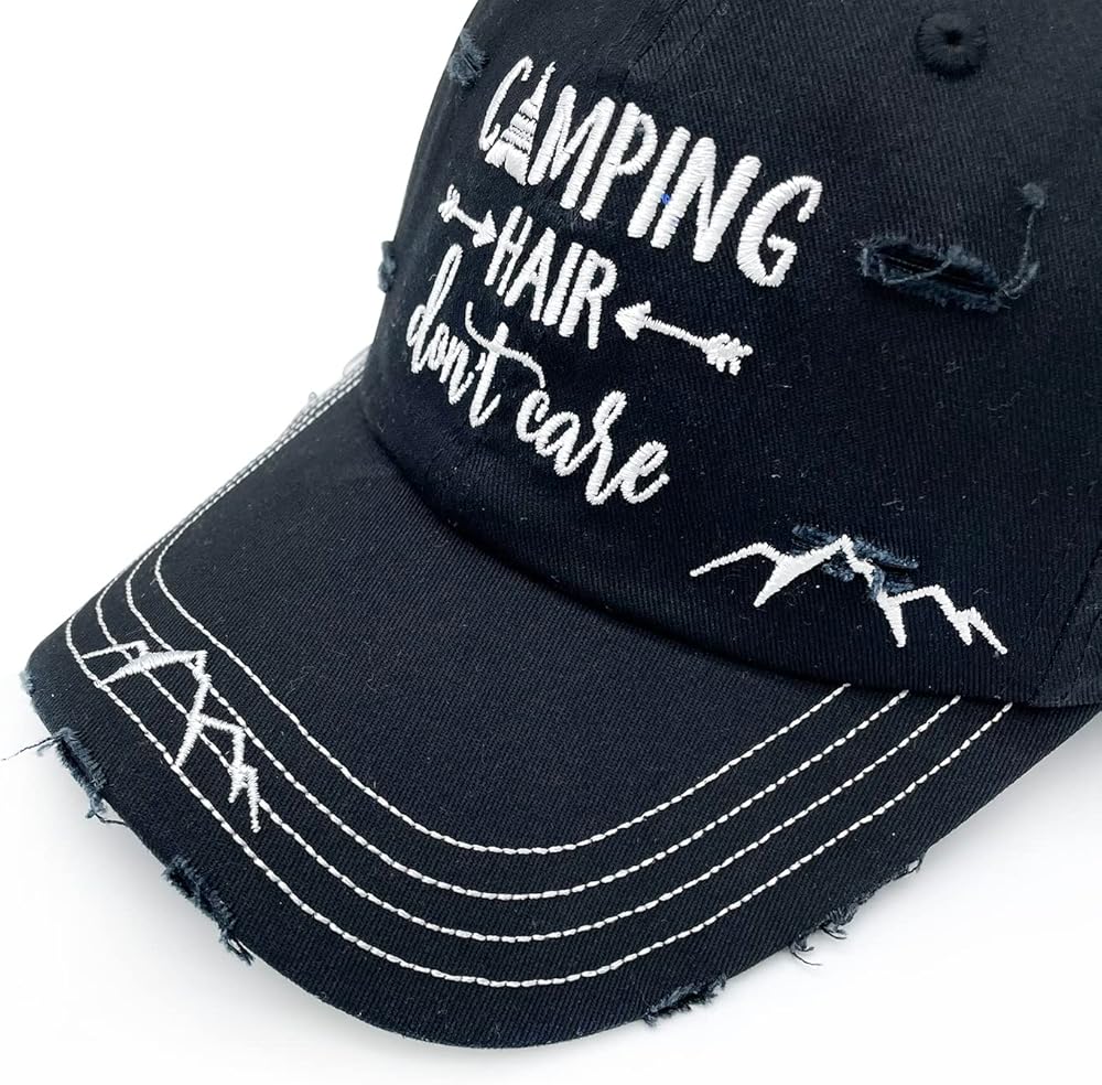 تصميم مطرز عصري - حروف أكبر وأكثر جرأة، حروف مطرزة عالية الجودة "Camping Hair Don't Care" على الجهة الأمامية، هدية عيد الأم للأم، هدايا التخييم، الصديقة، العمة، الابنة، الحفيدة