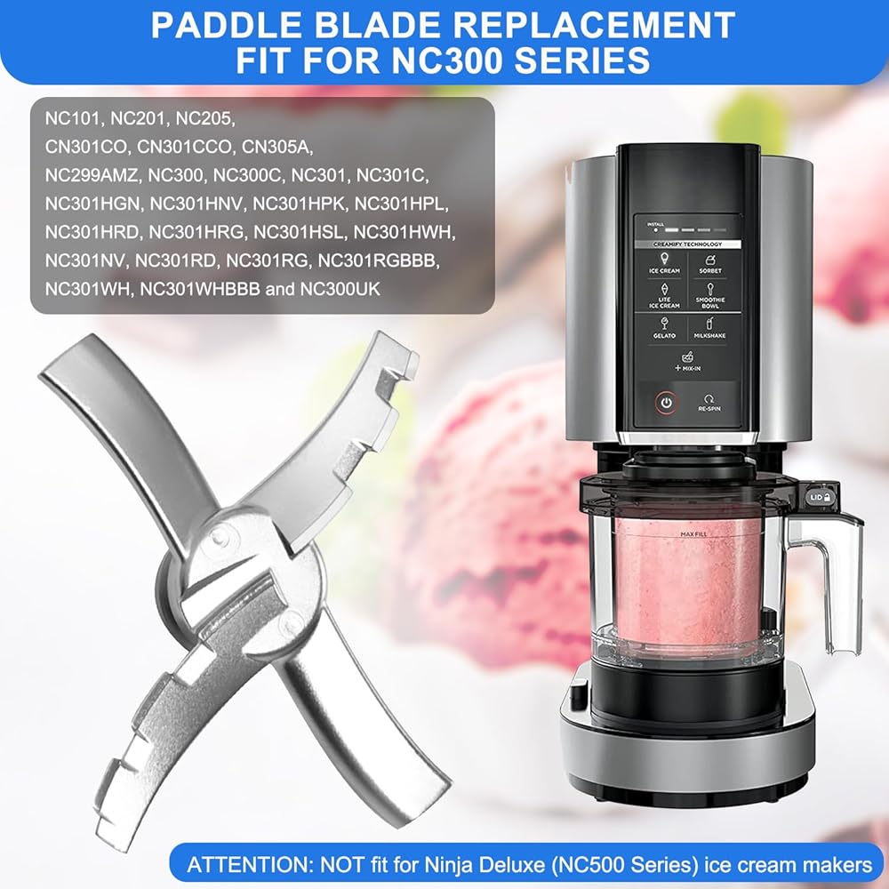 【ملاءمة مثالية】: استبدال شفرة المجداف هذا مناسب لصانعي الآيس كريم من سلسلة Ninja Creami NC300 (NC101، NC201، NC205، CN301CO، CN301CCO، CN305A، NC299AMZ، NC300، NC300C، NC301، NC301C، NC301HGN، NC301HNV، NC301). هبك، NC301HPL، NC301HRD ، NC301HRG، NC301HSL، NC301HWH، NC301NV، NC301RD، NC301RG، NC301RGBBB، NC301WH، NC301WHBBB وNC300UK). ولكنها غير مناسبة لصانعي الآيس كريم Ninja Deluxe (NC500). يرجى التحقق من النموذج قبل الطلب.