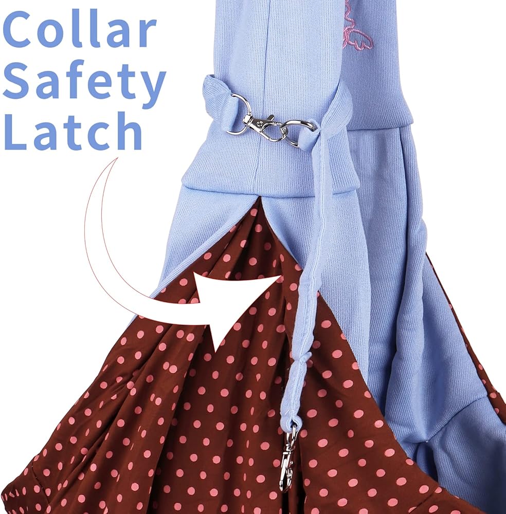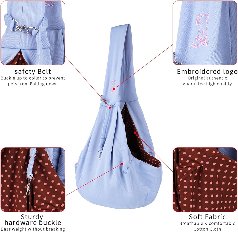 - حلقات حمل على شكل حبال بدون استخدام اليدين فوق الكتف بينما يستريح الحيوان الأليف في الحقيبة على الورك المقابل للحفاظ على أمان الحيوان الأليف وراحته.
