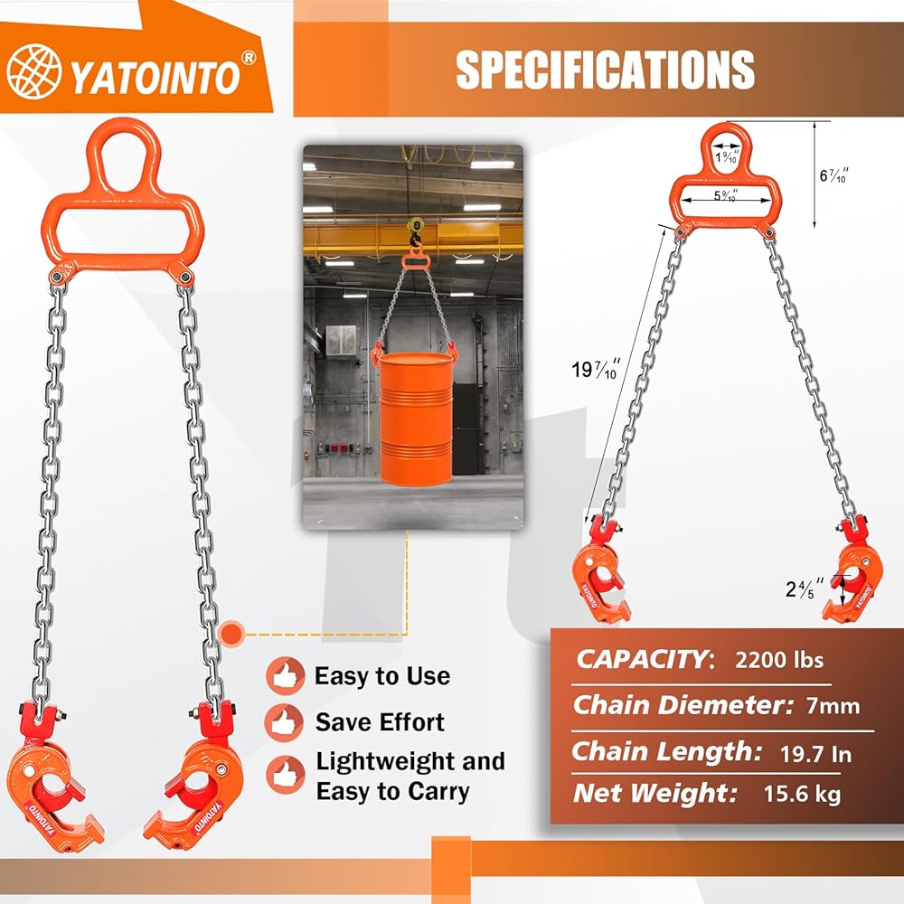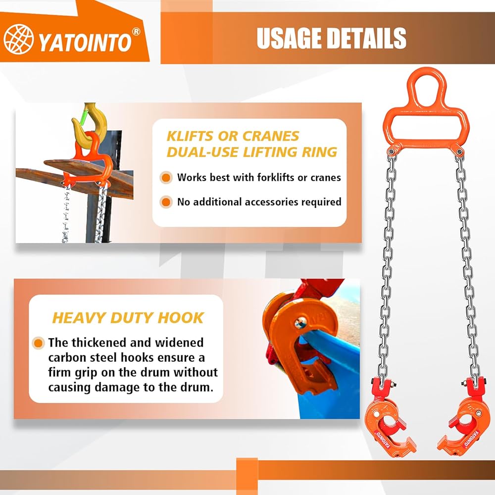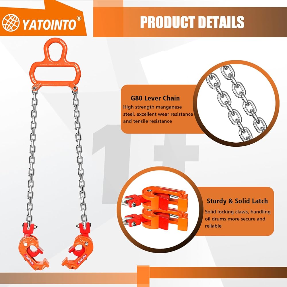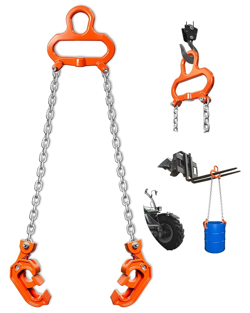 رافعة أسطوانة سلسلة محدثة سعة تحميل 2200 رطل تعمل بشكل رائع مع رافعات الشوكة أو الرافعات بإطار من سبائك الصلب G80 سلسلة رفع مجلفنة للأسطوانة البلاستيكية والمعدنية، برتقالي