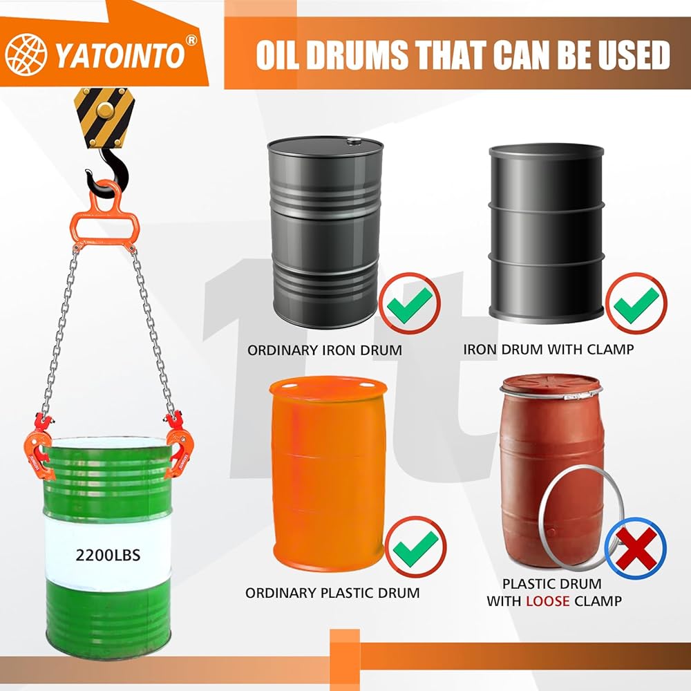 👍【المواصفات】 -- يمكن استخدام رافع الأسطوانة مع تثبيت برغي المقبض، بسعة 2200 رطل/1 طن، لرفع الطبول سعة 30 جالونًا و55 جالونًا.