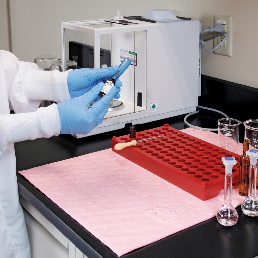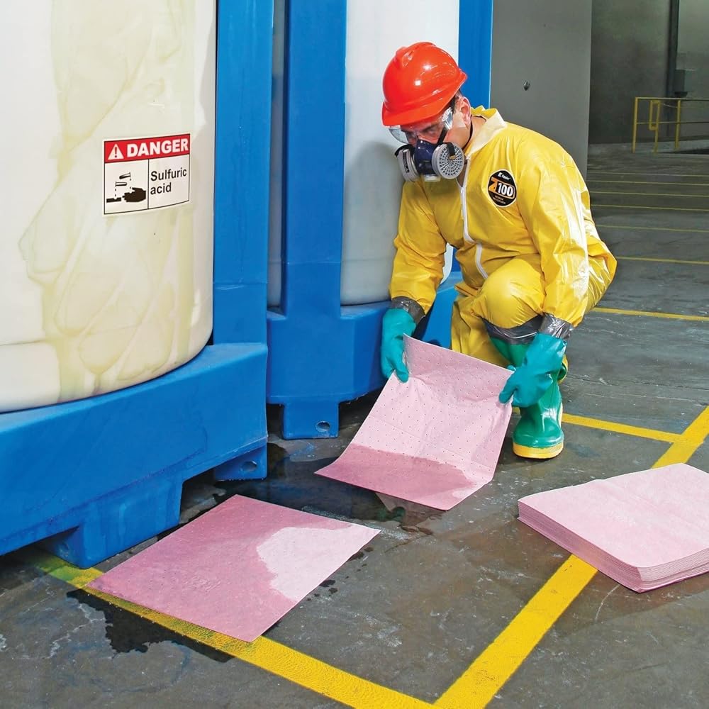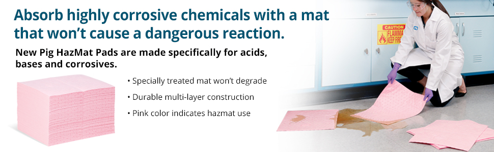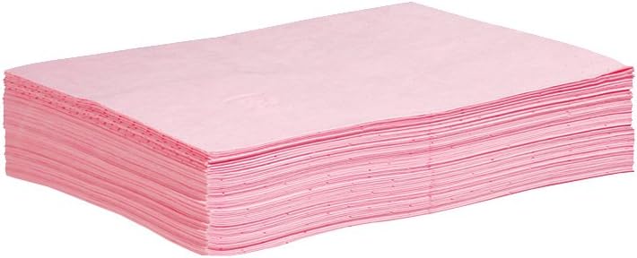 Safely soak up acids, bases, corrosives and hazardous chemical spills with our HazMat Pads. These absorbent mats for chemicals are the most durable, lasting 2x longer for fewer change-outs. It's pink color is easily distinguishable to assure workers use the correct mat during a spill emergency. The flame-resistant material won't burn immediately. Get the best value for cleaning up- small leaks and drips of hazardous liquids. Each pad absorbs up to 14 oz. The perforated mat measures 20-inches long by 15-inches wide.