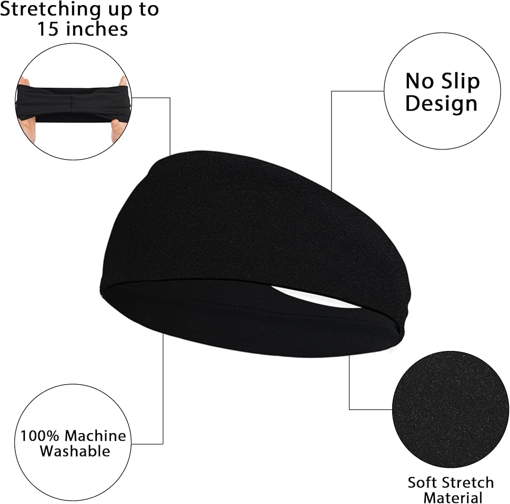 • This sweat band is super soft, stretchy and dry quickly. When you wear the wide sweatband around her/his head, they don't feel any pressure on head and it will stay in place comfortably