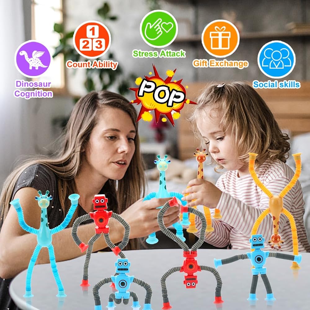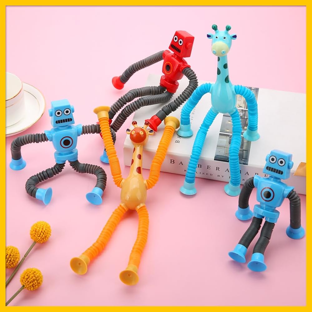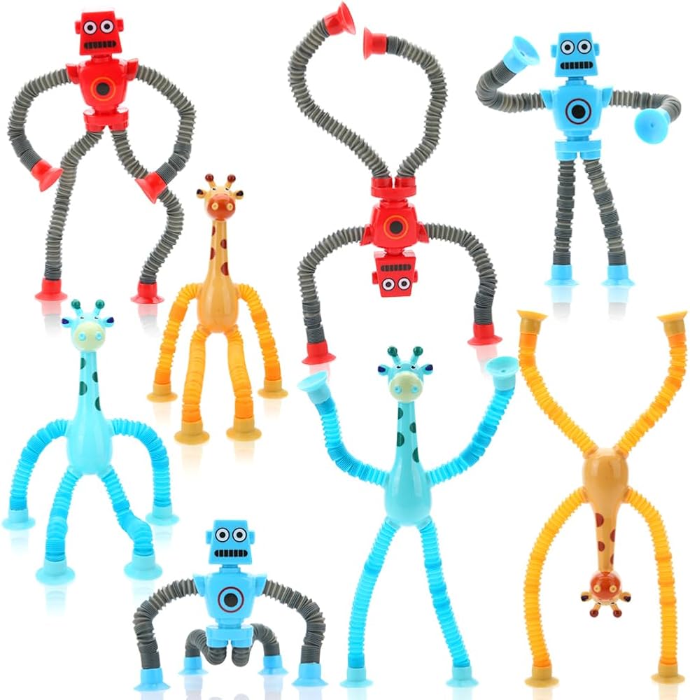 8 مجموعات ألعاب أكواب شفط تلسكوبية حسية: تتضمن المجموعة 4 ألعاب أنابيب روبوت بوب و4 ألعاب أكواب شفط حسية للزرافة. تشجع أطراف الروبوت والزرافة القابلة للتحويل على اللعب الخيالي وتحفز التفكير الإبداعي.