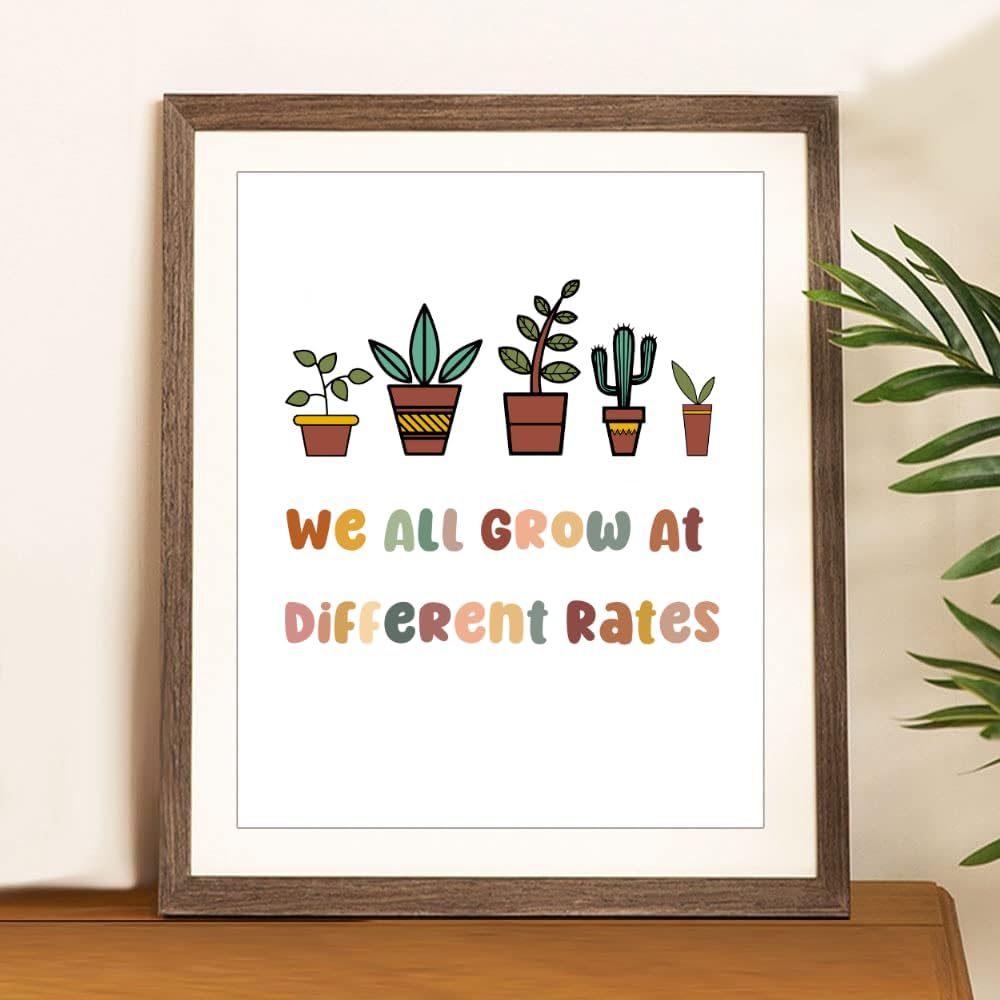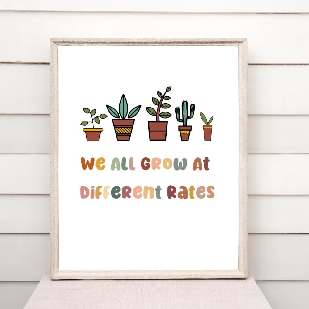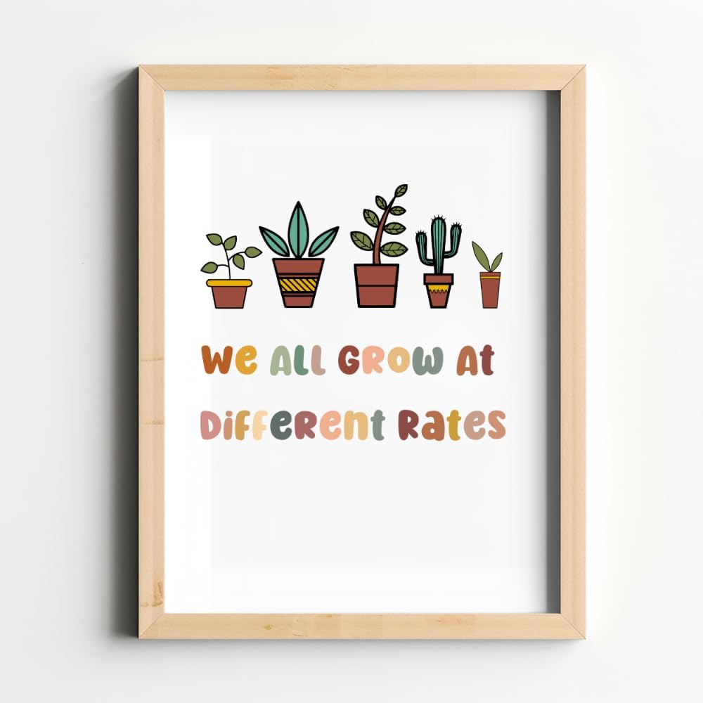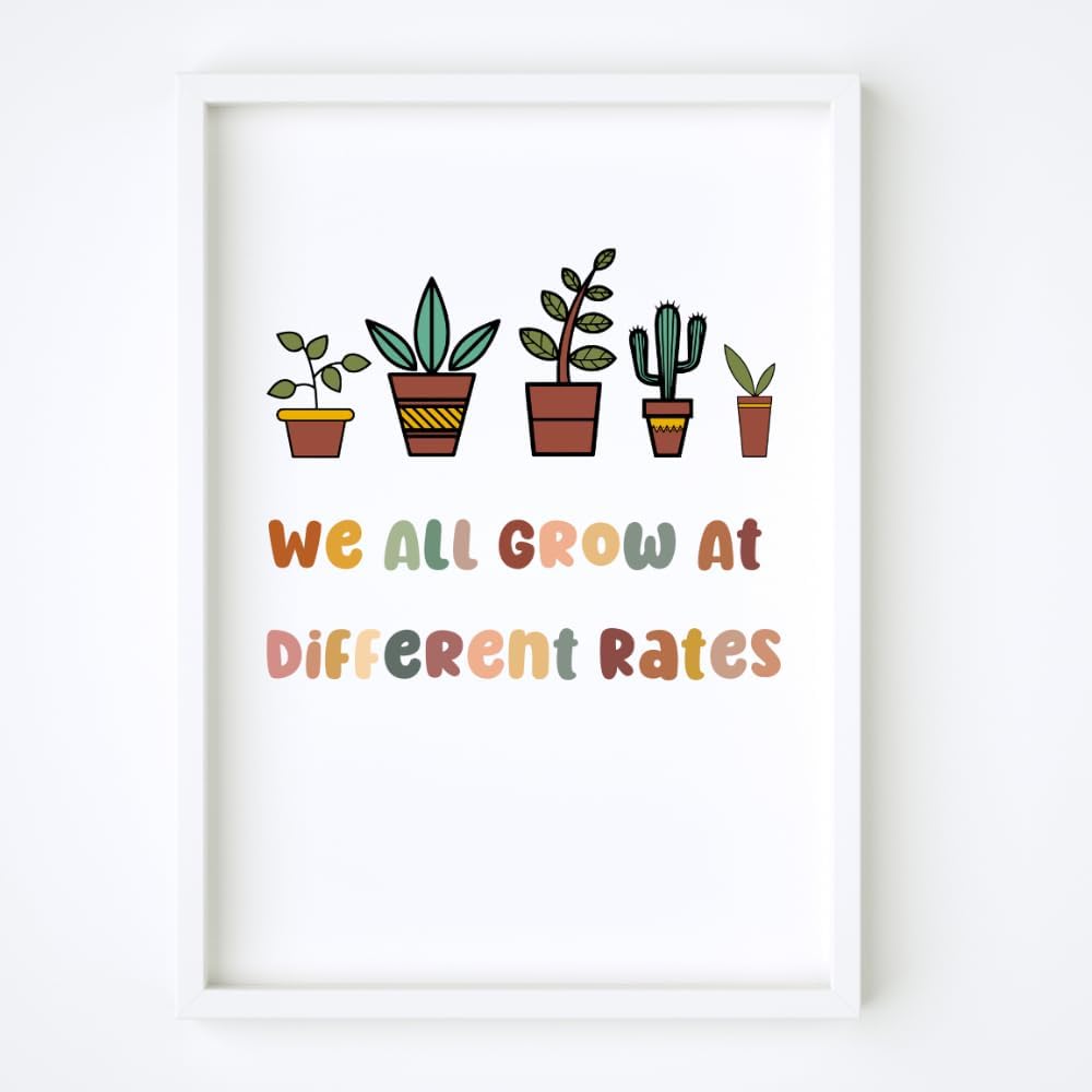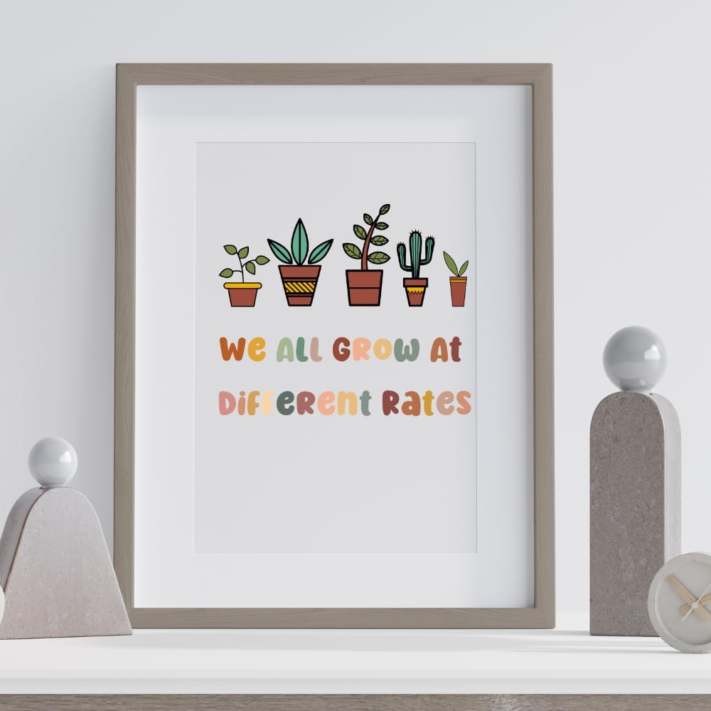 رعاية عقلية النمو: ارفع مساحتك التعليمية أو العلاجية من خلال ملصق الفصل الدراسي التمكيني "We All Grow at Different Rates". تعزيز عقلية النمو، وتشجيع الطلاب والعملاء والأطفال على تبني رحلات التعلم الفريدة الخاصة بهم.