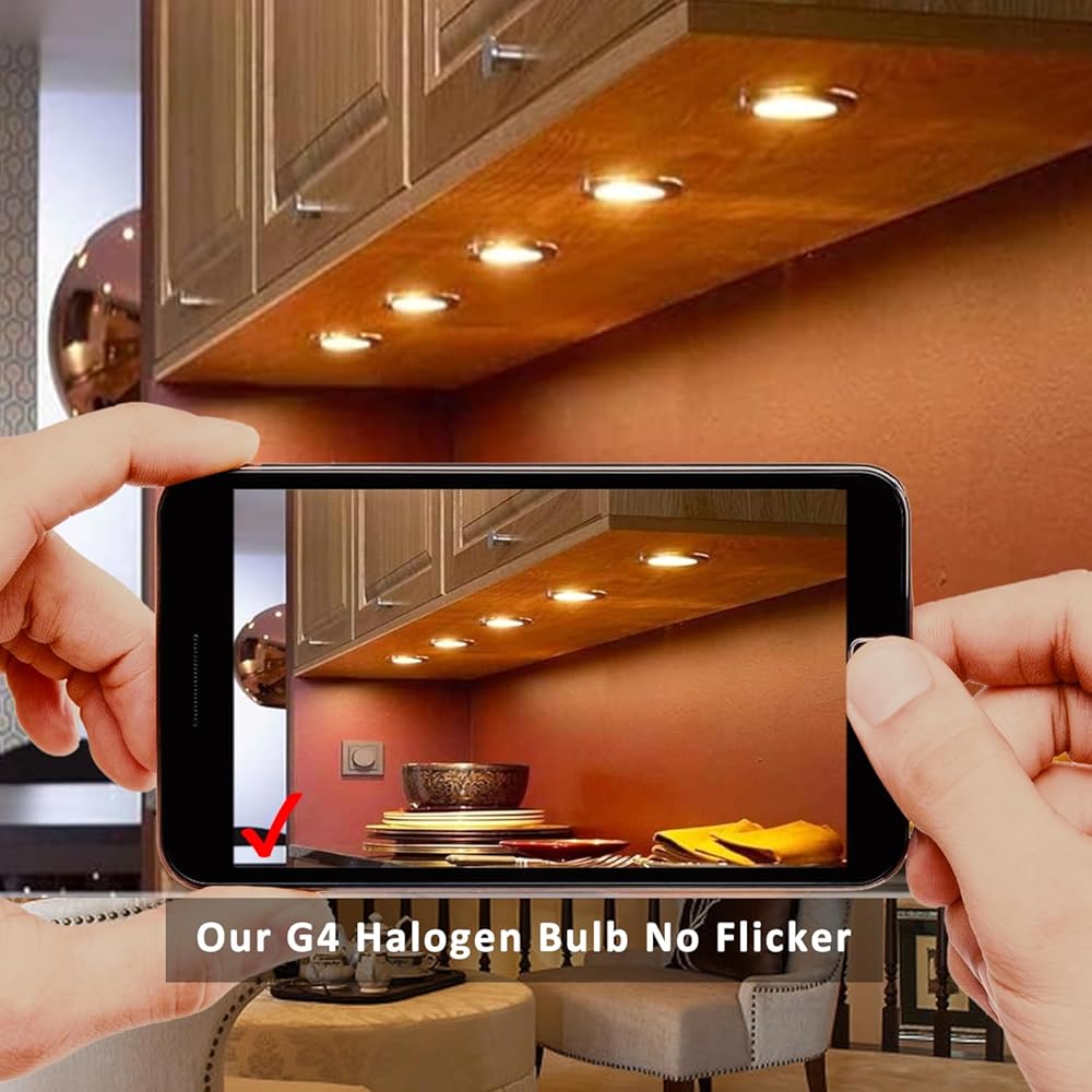 ⭐【بدون وميض وحماية أفضل للعين】- مصابيح الهالوجين g4 بدون الرصاص أو الزئبق الضار، بدون إشعاع ضار، بدون الأشعة فوق البنفسجية أو الأشعة تحت الحمراء. توفير ضوء ناعم ودافئ دون وهج وظلال قاسية.