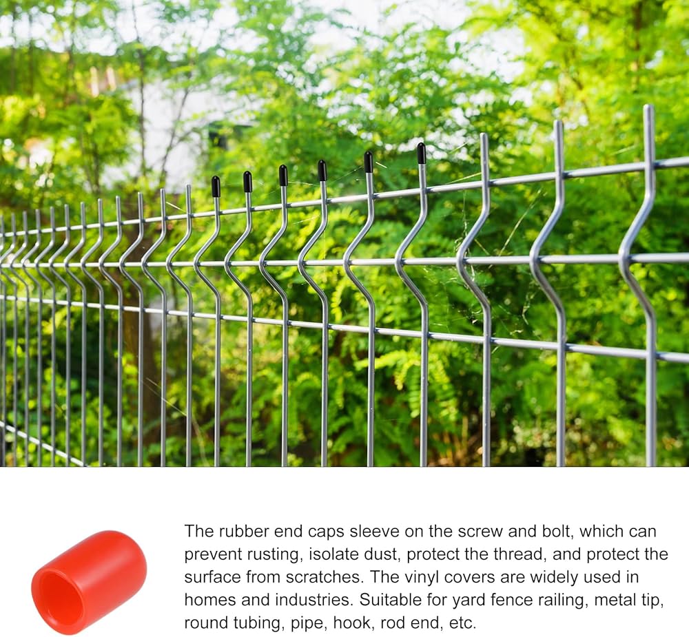 3-[تطبيق واسع]: [تطبيق واسع]: أغطية النهاية المطاطية على المسمار والمسمار، والتي يمكن أن تمنع الصدأ، وعزل الغبار، وحماية الخيط، وحماية السطح من الخدوش. تستخدم أغطية الفينيل على نطاق واسع في المنازل والصناعات. مناسبة لسياج الفناء، والطرف المعدني، والأنابيب المستديرة، والأنابيب، والخطاف، ونهاية القضيب، إلخ.