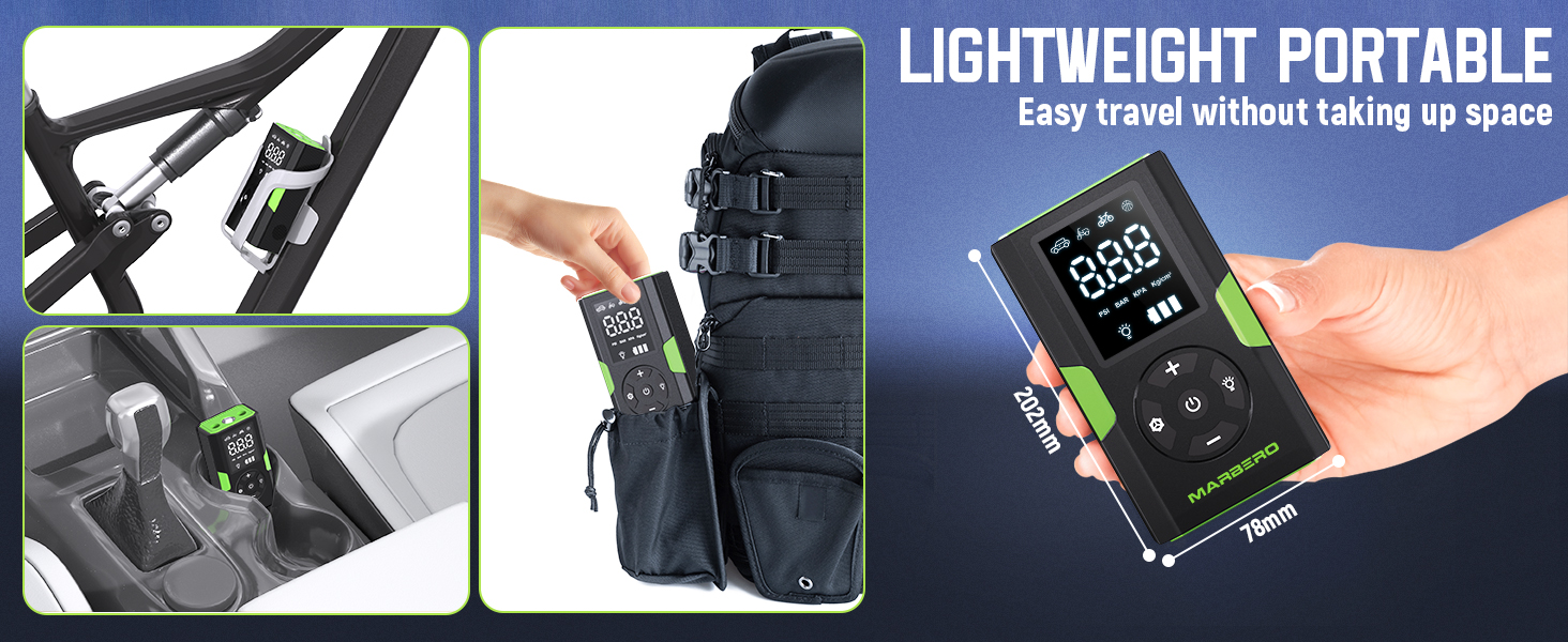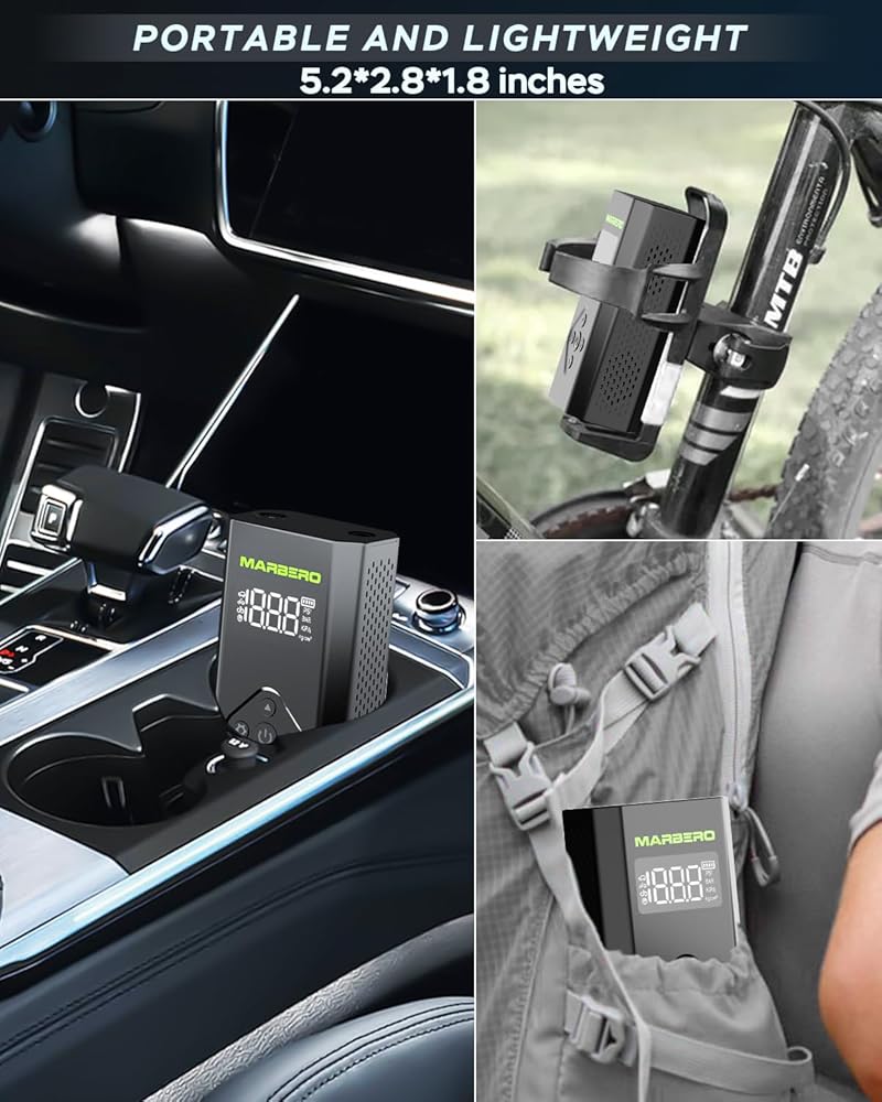 【مضخة هواء محمولة عالية الجودة لإطارات السيارة】ضمان لمدة 10 سنوات مع خدمة عملاء على مدار الساعة طوال أيام الأسبوع. عمر افتراضي يصل إلى 10 سنوات. لا توجد مخاطر على السلامة؛ لا يشتعل ذاتيًا في الصيف. لا يسخن بعد الاستخدام لفترة طويلة. بطارية ليثيوم مستقرة، مقاومة لفقدان الطاقة في الشتاء. هيكل ABS متين، يتحمل قطرات 0.5 متر. وقت استعداد لمدة 8 أشهر بعد الشحن الكامل. القدرة على التكيف مع نطاق درجة حرارة واسع: - 10 درجة مئوية -40 درجة مئوية / 14 درجة فهرنهايت - 104 درجة فهرنهايت. أسطوانة معدنية كاملة من سبائك الزنك، محرك نحاسي 3000 دورة في الدقيقة. التحكم الذكي في الرقاقة يمنع الشحن الزائد وارتفاع درجة الحرارة.