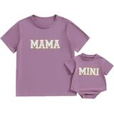 Mama and Mini Shirts Letter Print Short Sleeve Pullover Tops Mommy and Me Matching Outfits Baby Summer Clothes