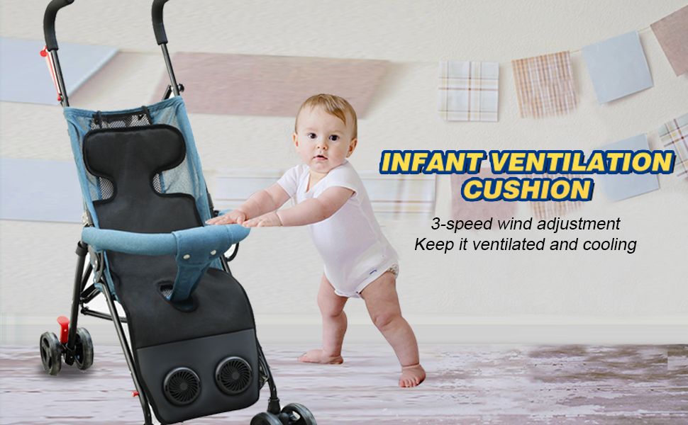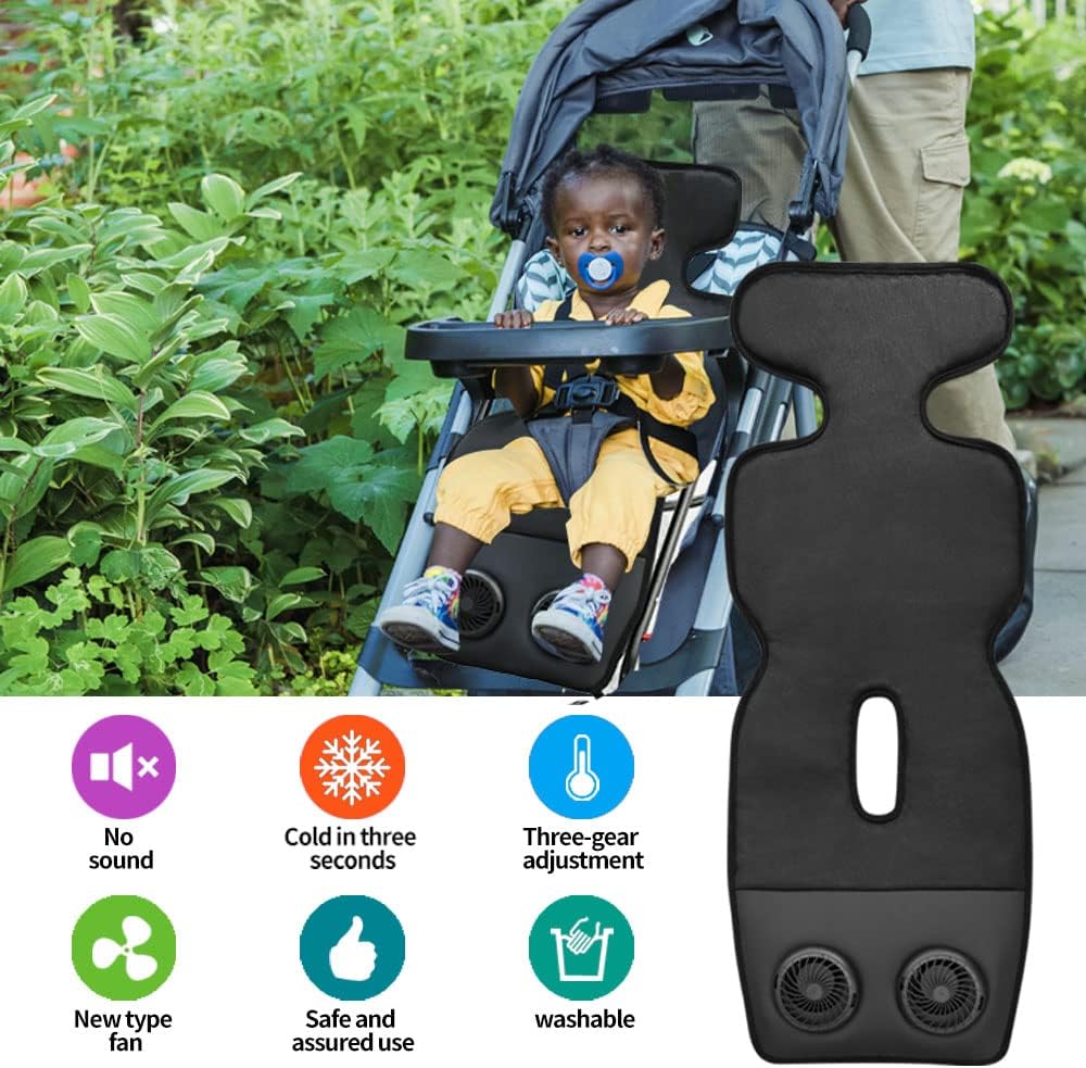 وسادة تبريد مقعد السيارة للأطفال، وسادة تبريد مقعد الثلج قابلة للتنفس في الصيف، مناسبة لكرسي الطعام في مقعد عربة الأطفال، مع مروحتين قابلتين للتعديل ومصدر طاقة USB، تبريد مثالي في الصيف (أسود)